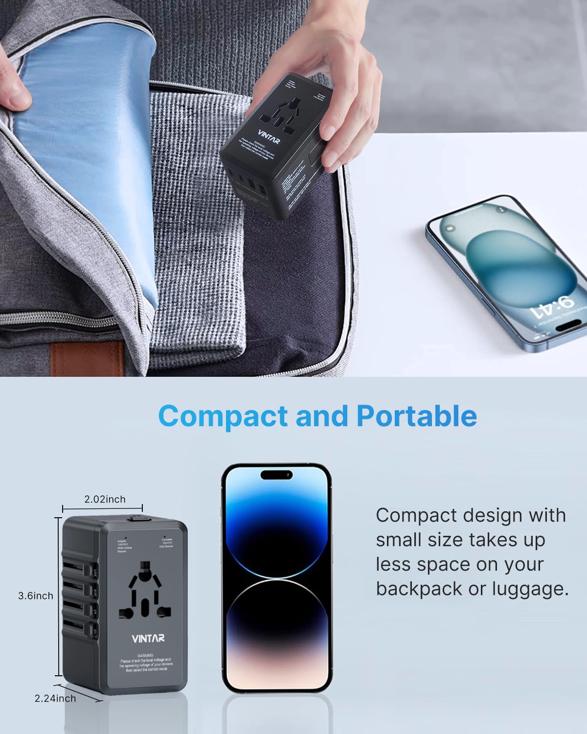 - 5 in 1 Step Down Transformer: This voltage converter for european travel is equipped with universal AC socket and 4 USB charging ports (2 USB C), accept plugs from US, EU, UK, AUS and more countries. The 2 USB A ports can charge up to 2.4A, and 2 USB C ports can charge up to 3A, all the USB ports output 3.4A/17W max, perfect for charging various USB devices