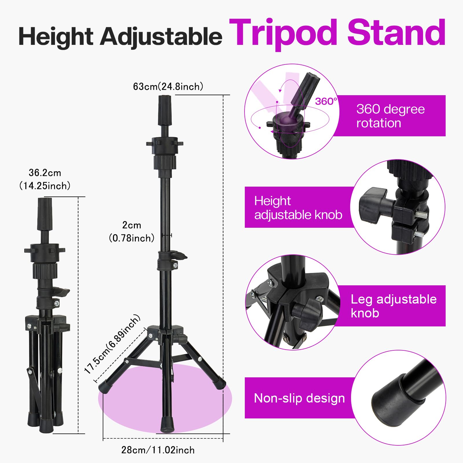 - đăMannequin Head Tripod StandăThe included wig head stand can hold the wig head mannequin firmly and stably, and will not be easily damaged.Head stand for wig styling as you like, very convenient for the use of manikin head for wigs.
