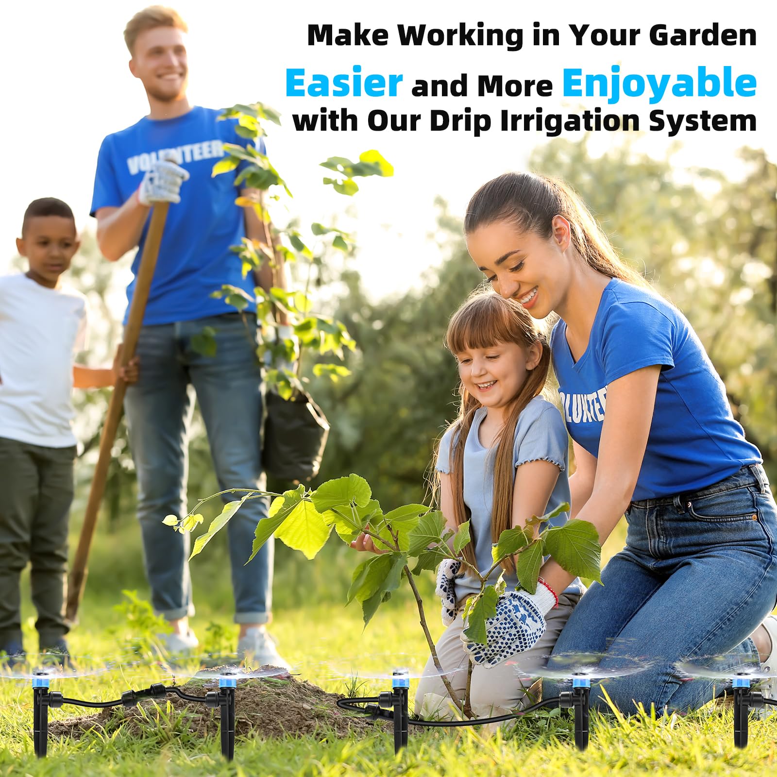 234FT Drip Irrigation System - Garden Watering System with Adjustable Three Spray Patterns with 1/2" Main Tube and 1/4" PE Distribution Tubing for Plants in Gardens, Raised Beds, Greenhouses, Lawns