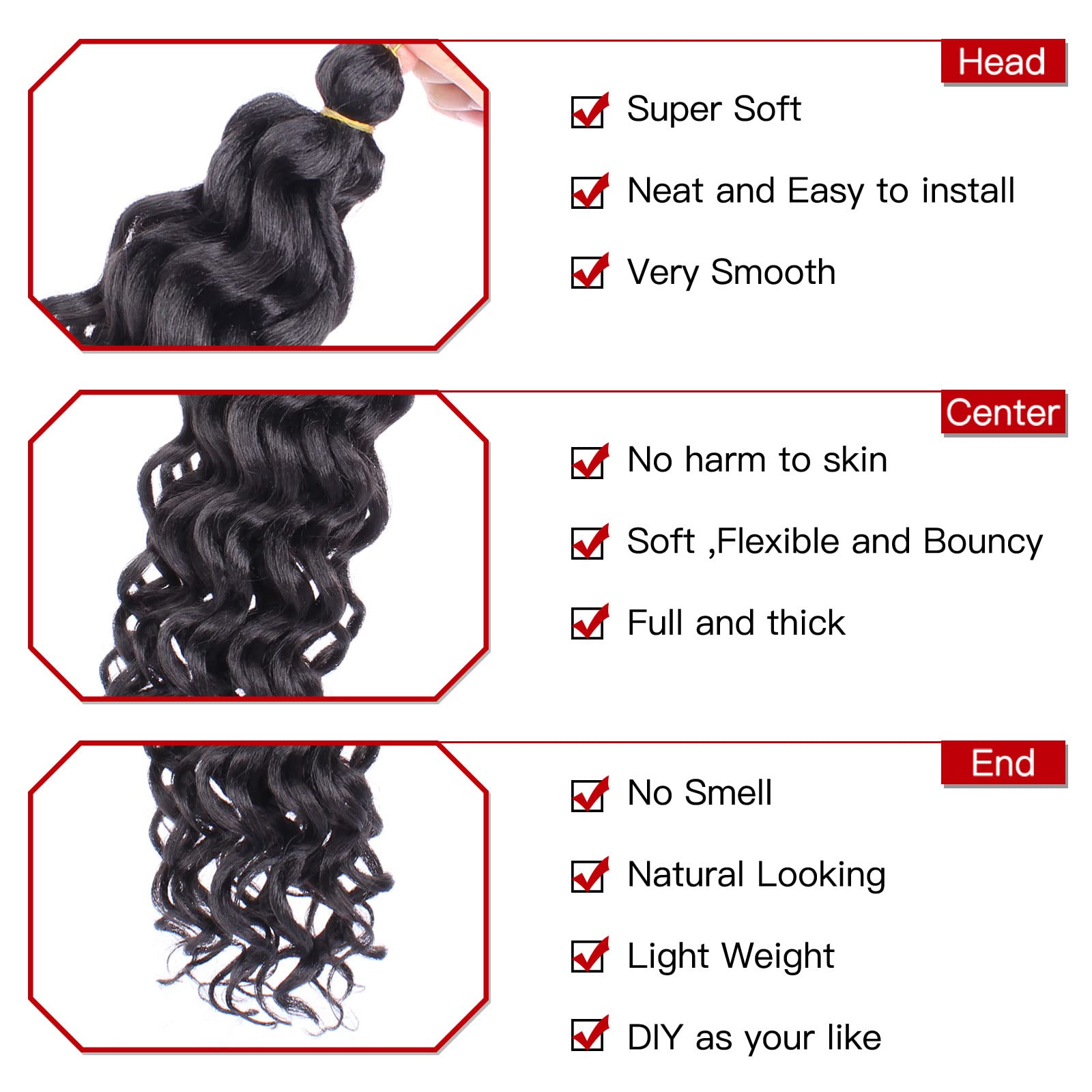 - 2.Hair Advantages:Ocean Wave Crochet Hair is No Smell, Soft, Durable, Easy to Install, Style, Wash and Care for, and Comfortable to Wear.