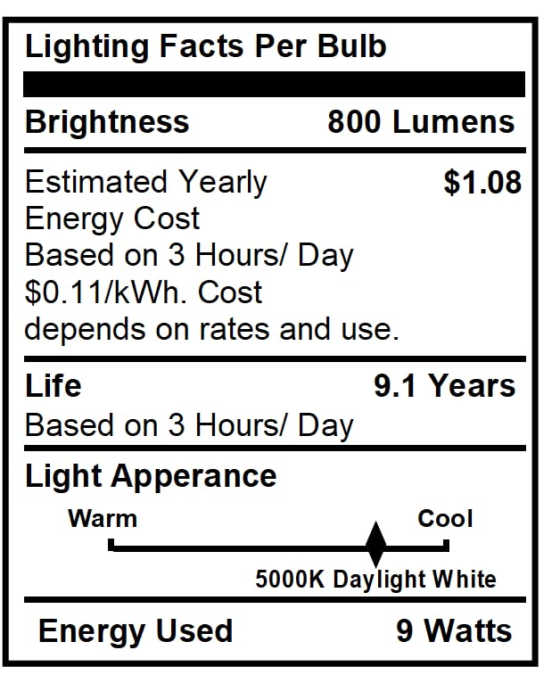 - 【Long Lasting & Energy Efficient】 Cut down on replacements and save on your energy bill. Each LED bulb uses only 9W to deliver the brightness of a 60 watt incandescent, saving up to 85% on electricity. With a true 10000-hour lifespan, these bulbs are built to last for years