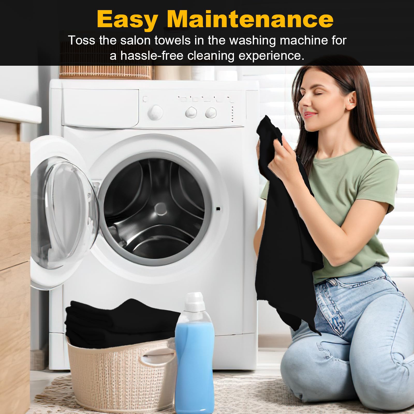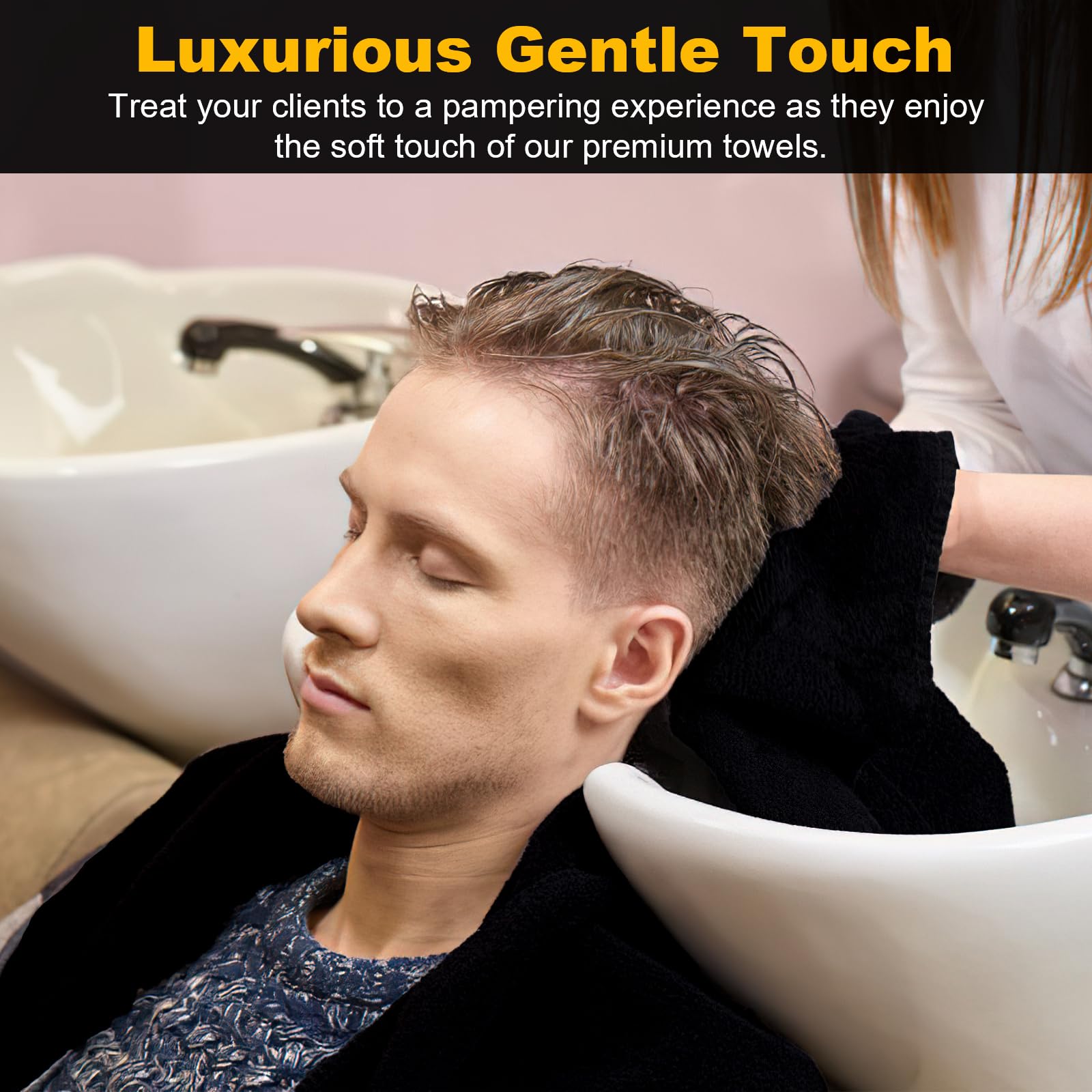 - Salon Equipment for Hair Stylist: Our towels Set includes 24 black salon towels, these beauty shop towels are made of premium, absorbent microfiber, ensuring that wet hair or skin can be quickly and thoroughly dried with minimal effort, which also saves valuable time during salon services