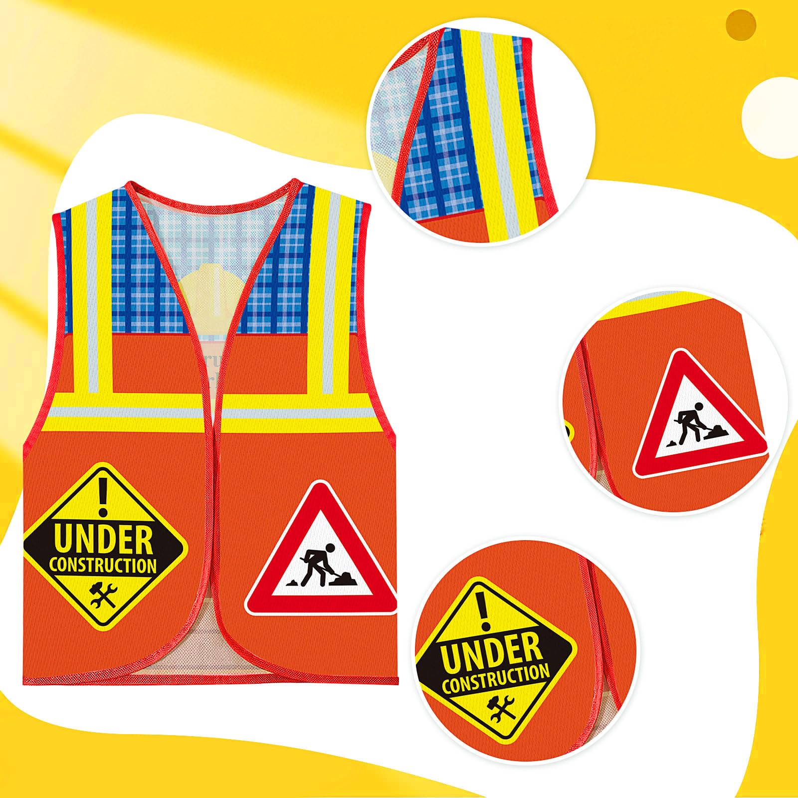 - Convenient Size: designed to fit kids of various ages comfortably, these construction dress-up costumes, with a vest measuring 13 x 17 inches and a hat at 4 x 9.5 inches, the construction vest for kids party has no zipper, easy to put on and take off. Get ready for construction-themed fun with these kids' construction party hats and vests, which enables your child to experience the worker life happily, bringing infinite pleasure and creating lasting memories of fun