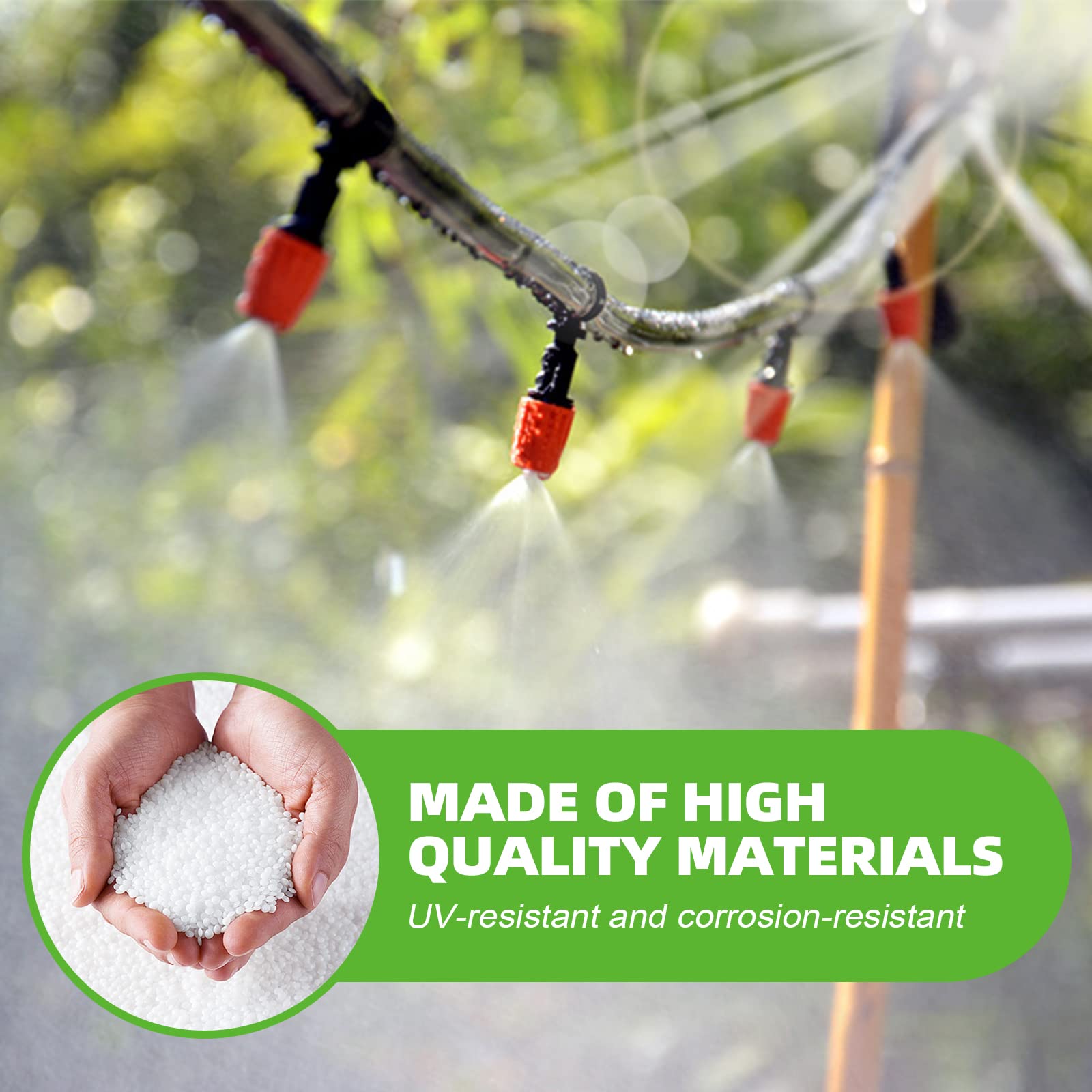 - Versatile Nozzles for Every Plant: Tailor irrigation with 15 fountain nozzles for fine misting, ideal for seedlings; 15 drip emitters for precise, slow watering of trees and shrubs; and 20 adjustable nozzles for customizable flow rates and spray patterns, ensuring optimal care for diverse plants.