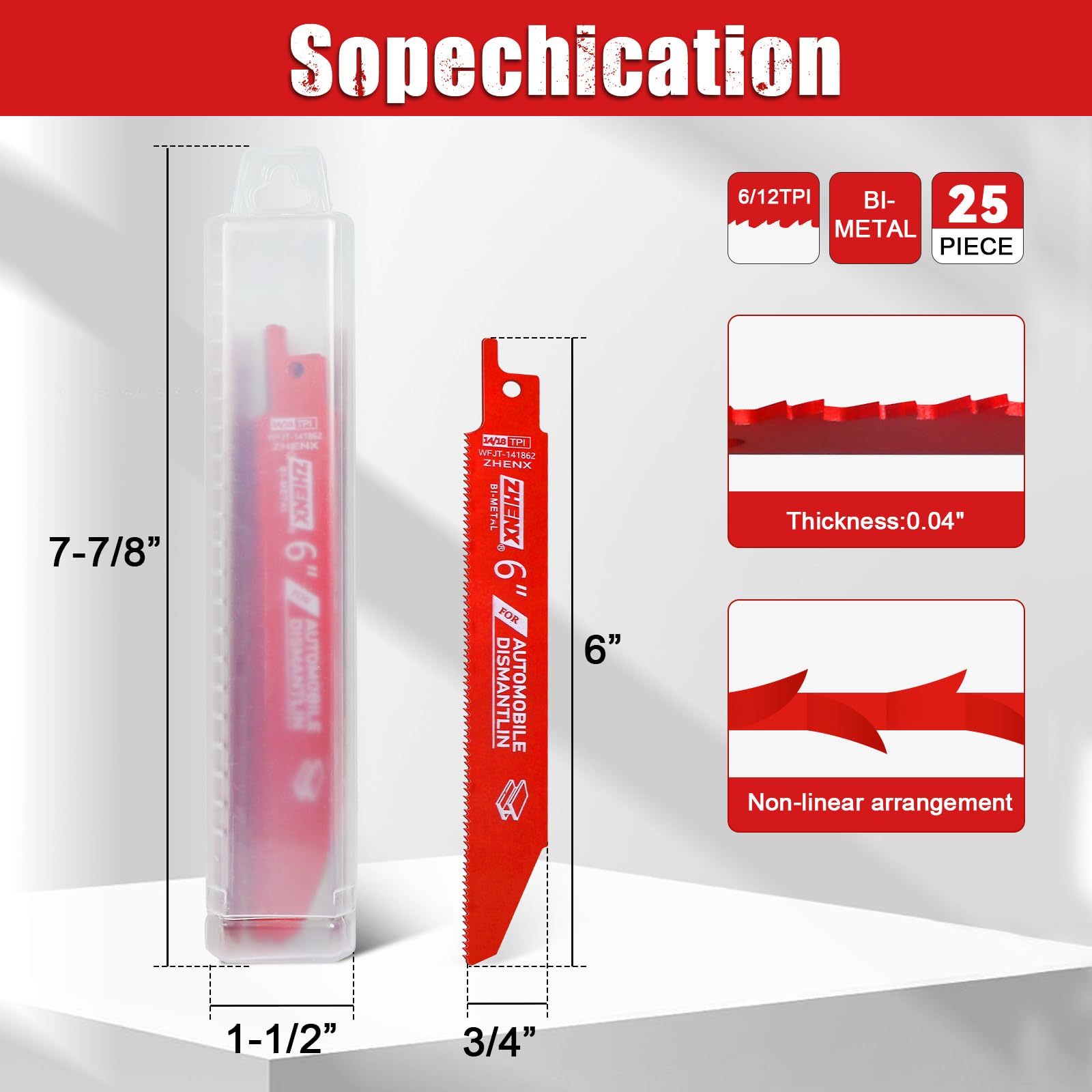- Born for Professionals:The saw blade packaging has a large quantity and is suitable for people who have been engaged in metal cutting work for a long time. 6 inch reciprocating saw blades can cut common materials such as metal,especially in the automotive industry, cutting components such as valves and camshafts in automotive engines is more flexible and practical compared to other types of tools