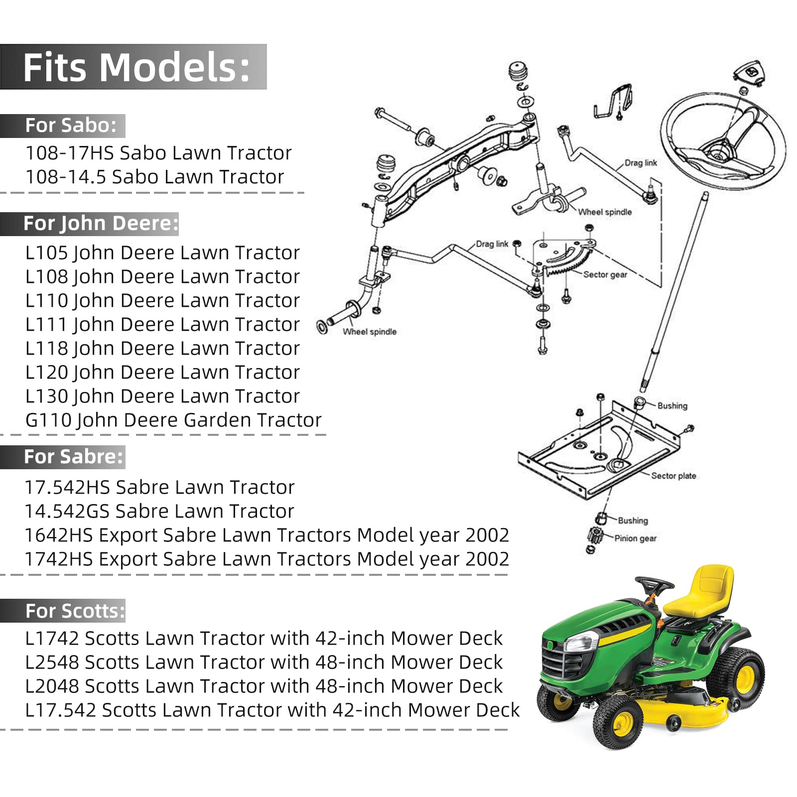 - 【FITS MODELS】Steering Sector Gear Repair Kit compatible with John Deere L105 L108 L110 L118 L120 L130 G110 Lawn Tractors| Sabre 14.542GS 17.542HS| Scotts L1742 L17.542 L2048 L2548 & More, Please verify your model is listed in the fitment