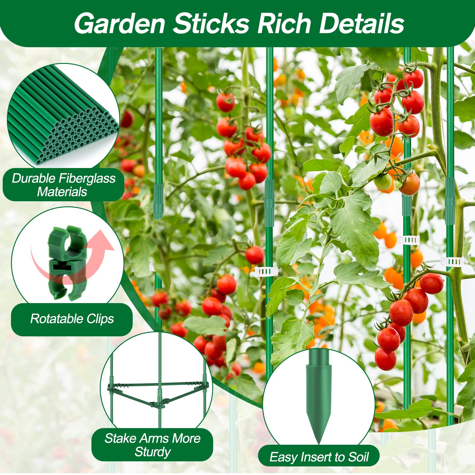 256PCS Garden Stakes Set with 75PCS 16 Inch Fiberglass Plant Sticks and Stake Arms, DIY 4ft 5ft 6ft 7ft 8ft Tomato Stakes, Garden Stakes for Vegetables Tomato Pepper Indoor Outdoor Plants