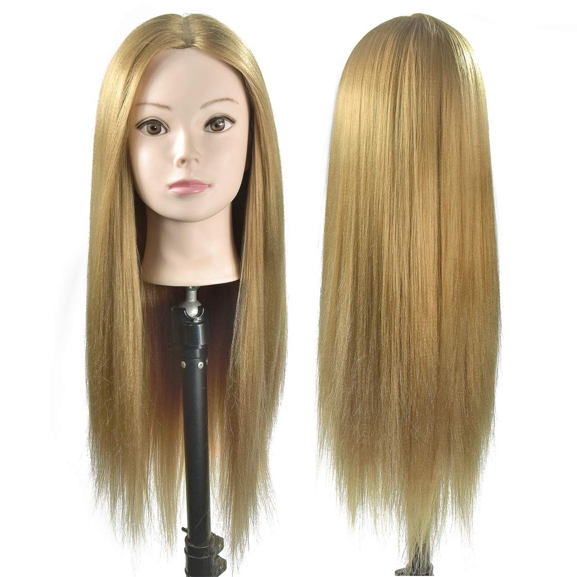 28" Cosmetology Mannequin Head Light Brown Synthetic Hair Professional Hairdressing Training Head Manikin Head with Free Clamp
