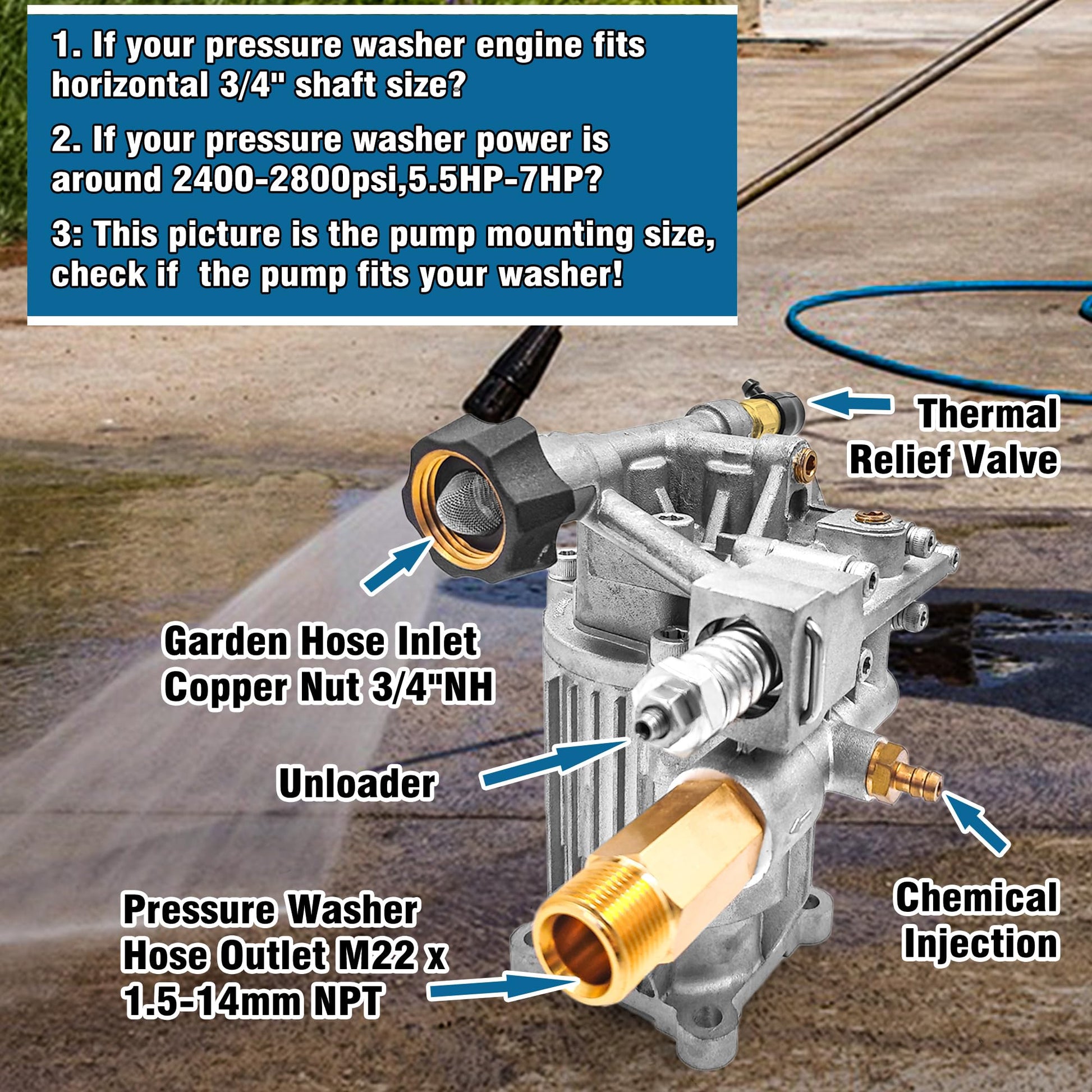 - Tips: Please check whether the 3/4'' shaft vertical water pump is suitable for your high pressure washer. Pls check your pressure washer’s mounting size, pressure power and shaft size before you buy. If you are not sure if your pressure washer would fit, please contact ' Amazon Customer Service'.