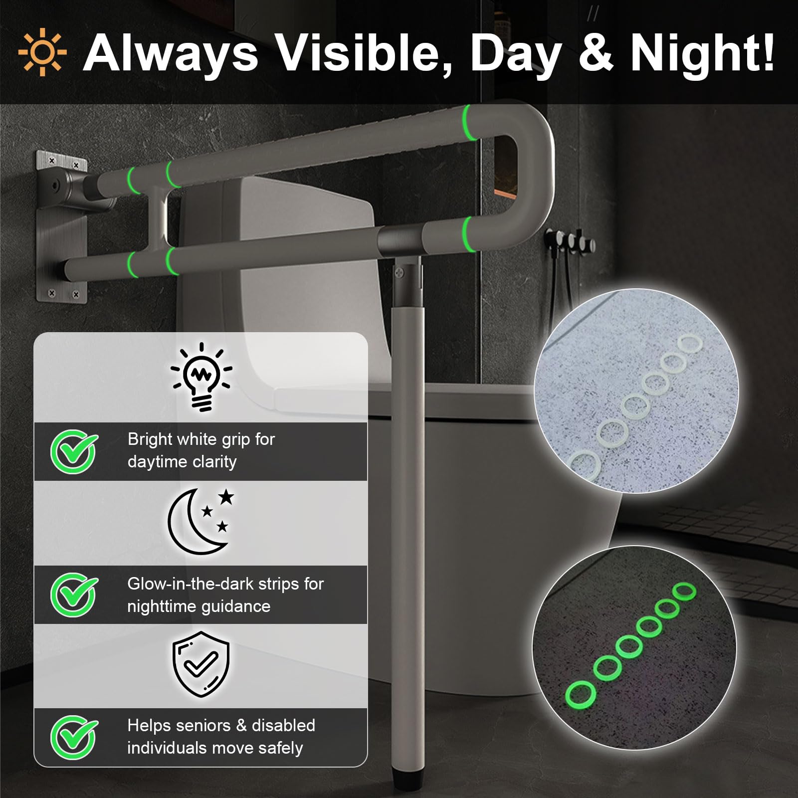 - 【Luminous design】: This handicap grab bar has a luminous design, and six fluorescent rings are designed inside the tube to effectively avoid collisions at night, so that the handrails for disabled people can also glow in the dark (the fluorescent material absorbs light and emits light)