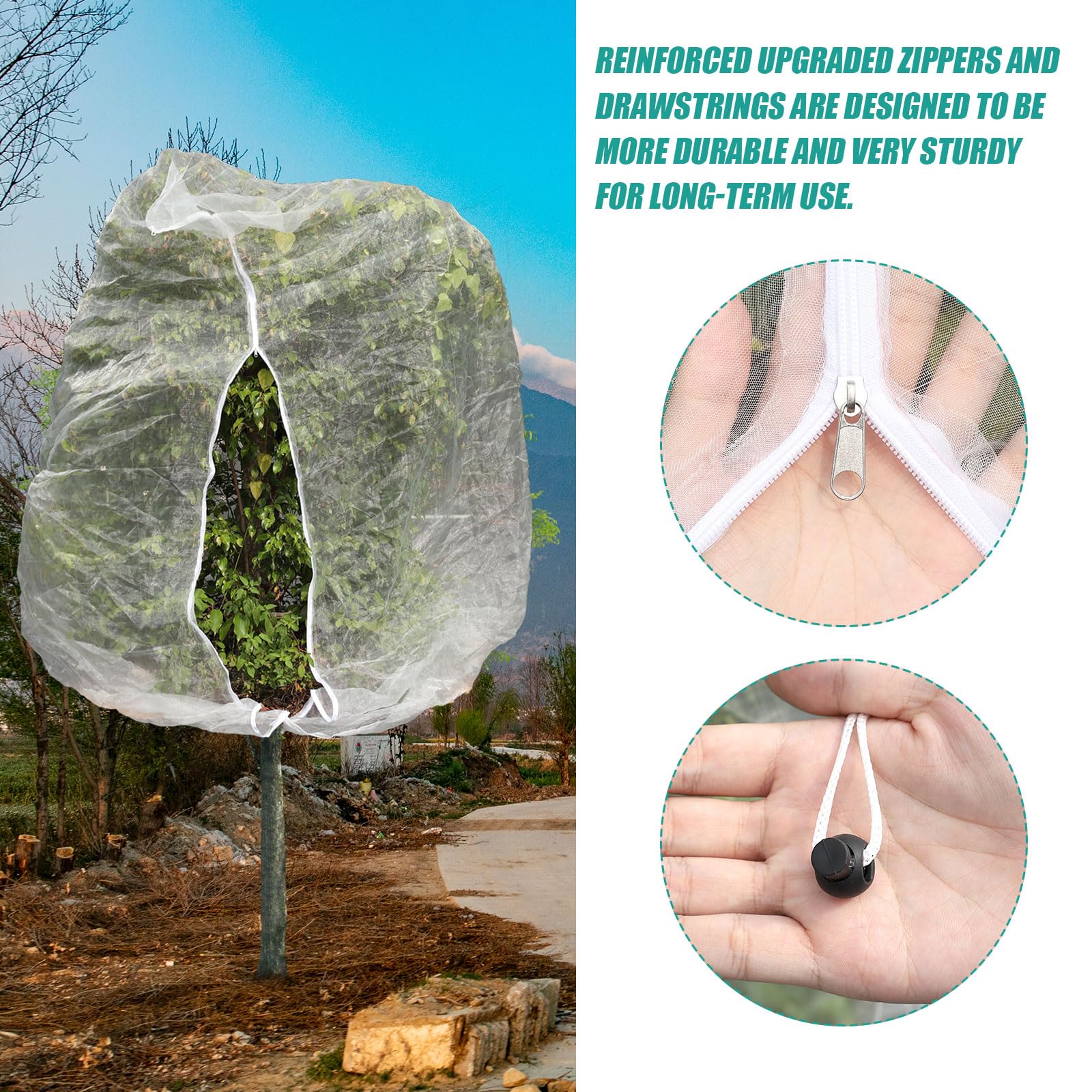 - Exquisite Design: Reinforced and upgraded zipper and drawstring design, more durable and very strong. With adjustable cords at the bottom, these tree nets of ours can be tightened to suit the size of your fruit trees and plants and can withstand extreme weather conditions.