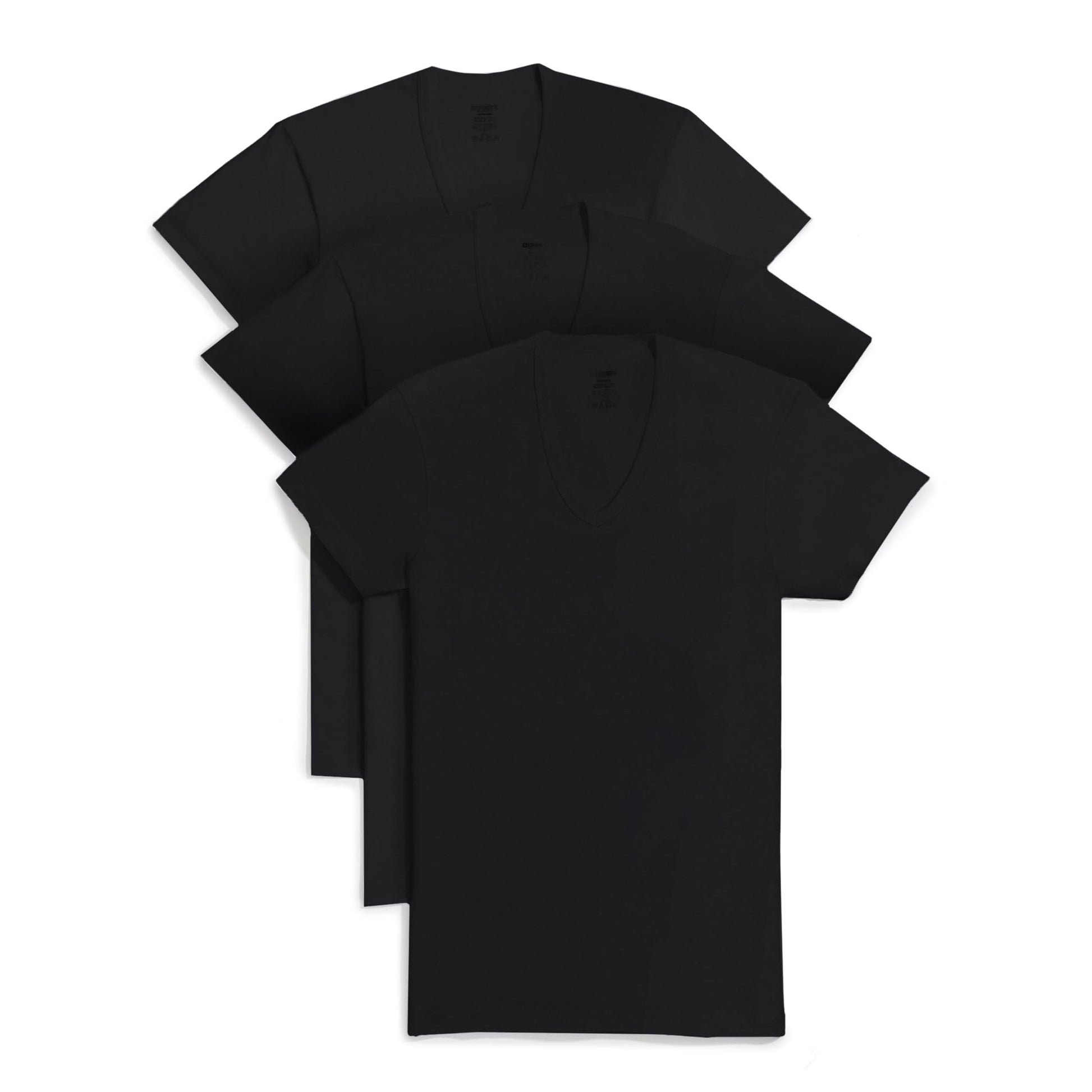 2(X)IST Mens Essential Cotton Slim Fit V-Neck T-Shirt 3-Pack Base Layer Top, Deep Black, Large US