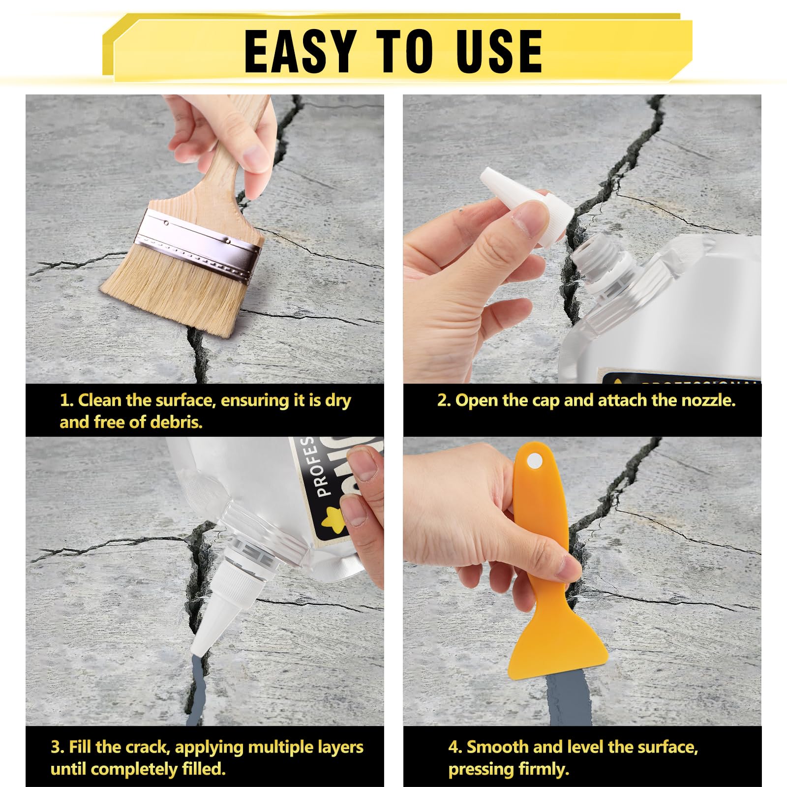 - High Elasticity And Settlement Resistance: Our self-leveling concrete crack filler boasts a high elasticity formula, making it perfect for filling a wide range of cracks. Its advanced composition ensures it adapts to ground movements and settlements, preventing further cracking and maintaining the integrity of your concrete surfaces.