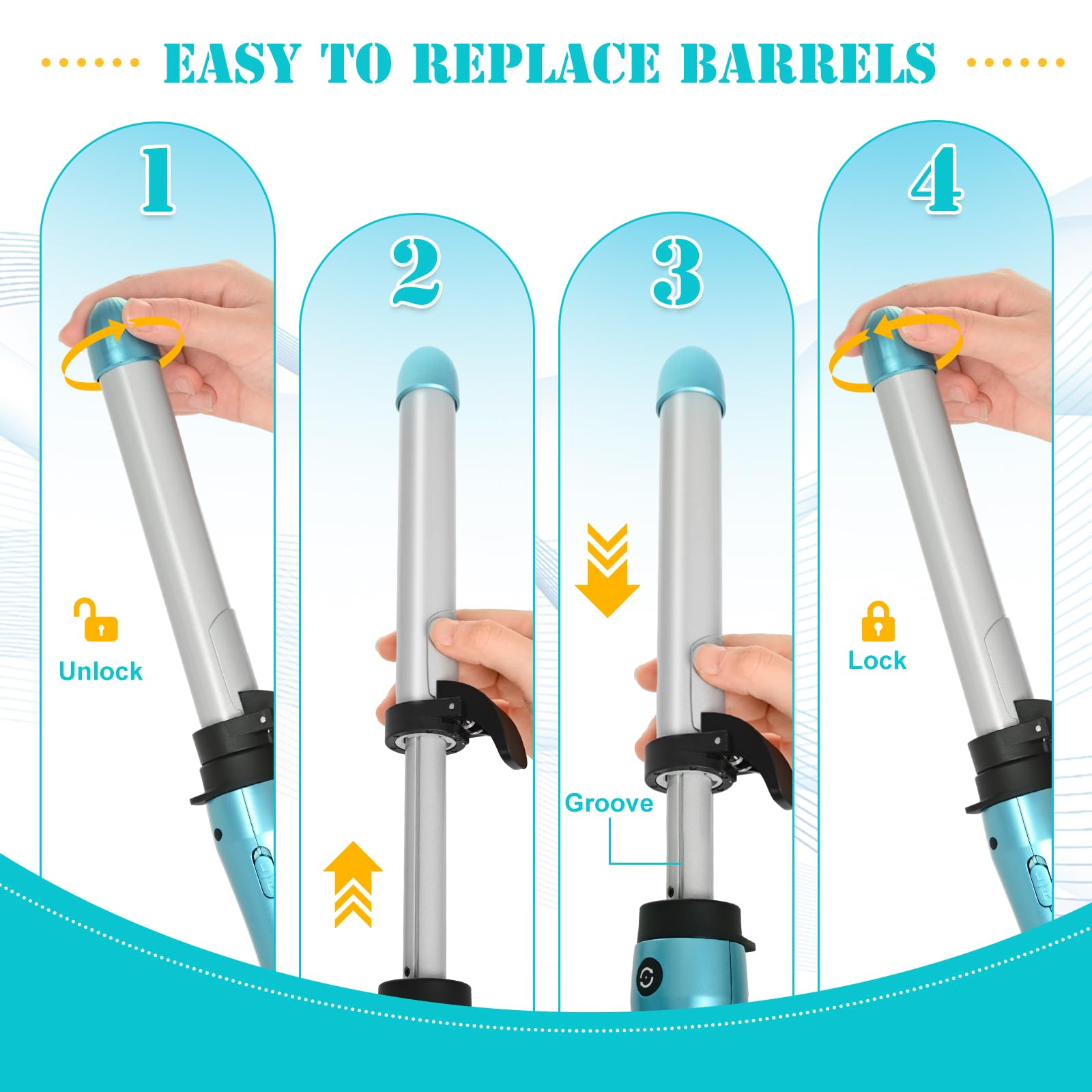 - 【Negative Ion Ceramic Hair Care Technology】The surface of the curly hair heating barrels is coated with professional tourmaline ceramic coating to evenly distribute heat and reduce heat damage to the hair. The negative ions emitted can lock in hair moisture, eliminate static electricity, and keep your curly hair curly, shiny, and beautiful for a long time, without heat damage.