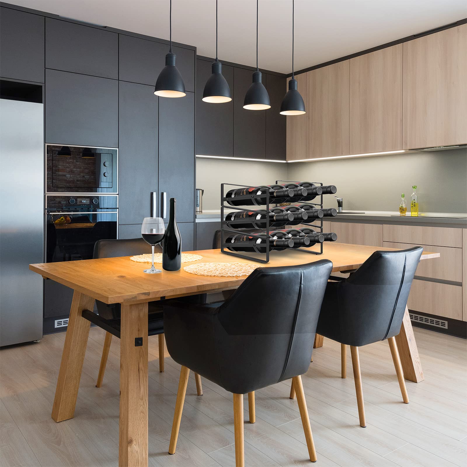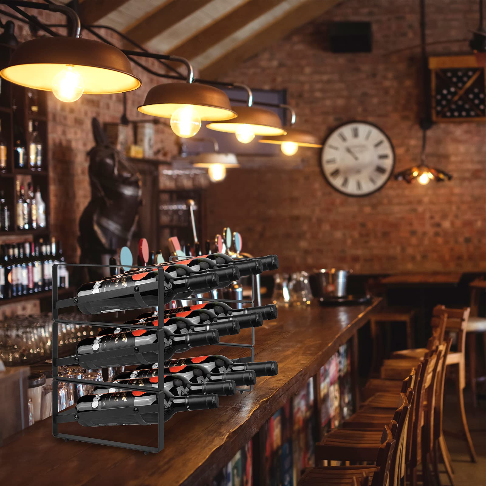 - 【Sleek modern wine stand】: This simple wine rack fits in with any decor. A smooth black finish and minimalist geometric design make this iron wine rack a great addition to any setting whether it be rustic, modern, industrial or any other.