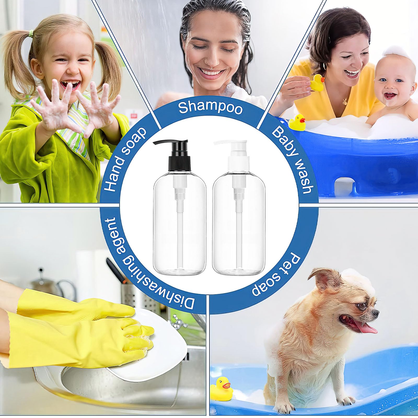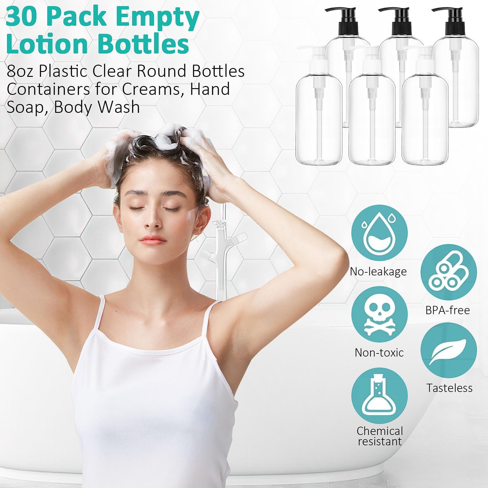 30 Pack 8 oz Clear Empty Lotion Bottles Plastic Pump Bottles Hand Dish Dispenser Round Bottles Containers Refillable Container Black White Pumping for Shampoo Conditioner Body Wash Cream Liquid Soap