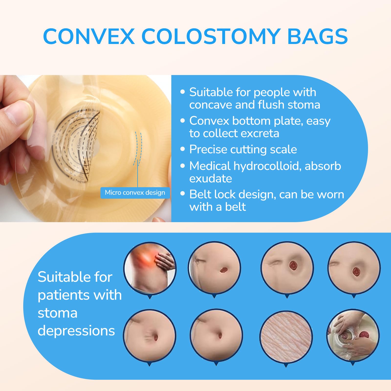- SKIN FRIENDLY MATERIAL: Made with advanced medical hydrocolloid material, these convex colostomy bags offer extended wear time while remaining gentle on the skin. The soft non-woven fabric reduces friction and noise, minimizing skin irritation and enhancing comfort