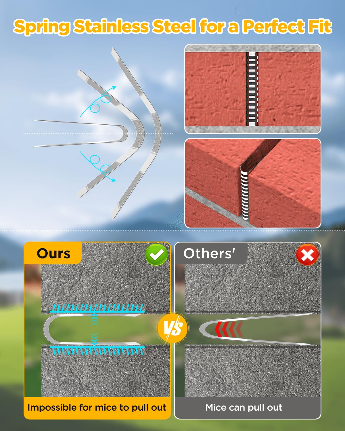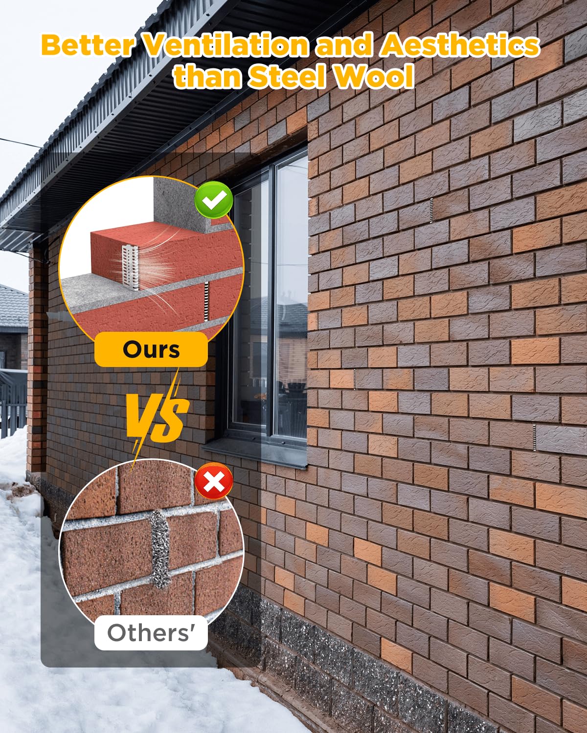- Spring Stainless Steel for a Perfect Fit: Our spring stainless steel offers excellent resilience, ensuring a tight seal around wall gaps of all sizes. It conforms to both sides of the brick, keeping mice and insects out. Its superior rust resistance guarantees long-lasting outdoor protection.