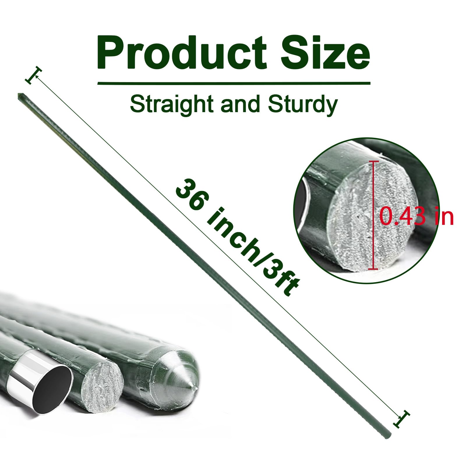 - PRODUCT SPECIFICATIONS: Pack of 30 green plants support stakes 36 inch length, 0.32 inch in diameter, suitable for most plants growth and support.