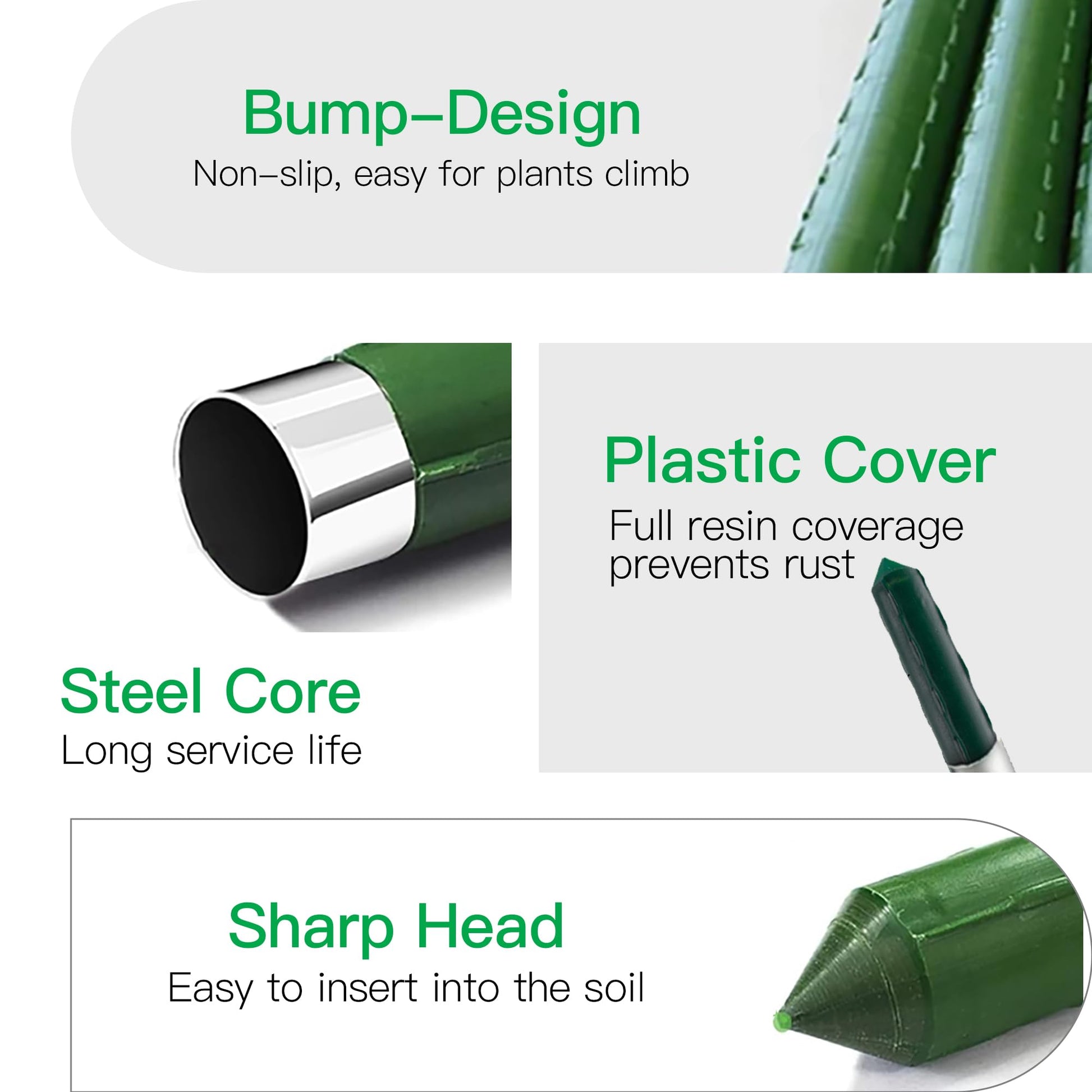 - DURABLE AND RUST-PROOF: The garden stake is made of high-quality hollow steel, which make it upright guidance, the resin coating to prevent more UV and weather resistant to rust, can be reused for long time.