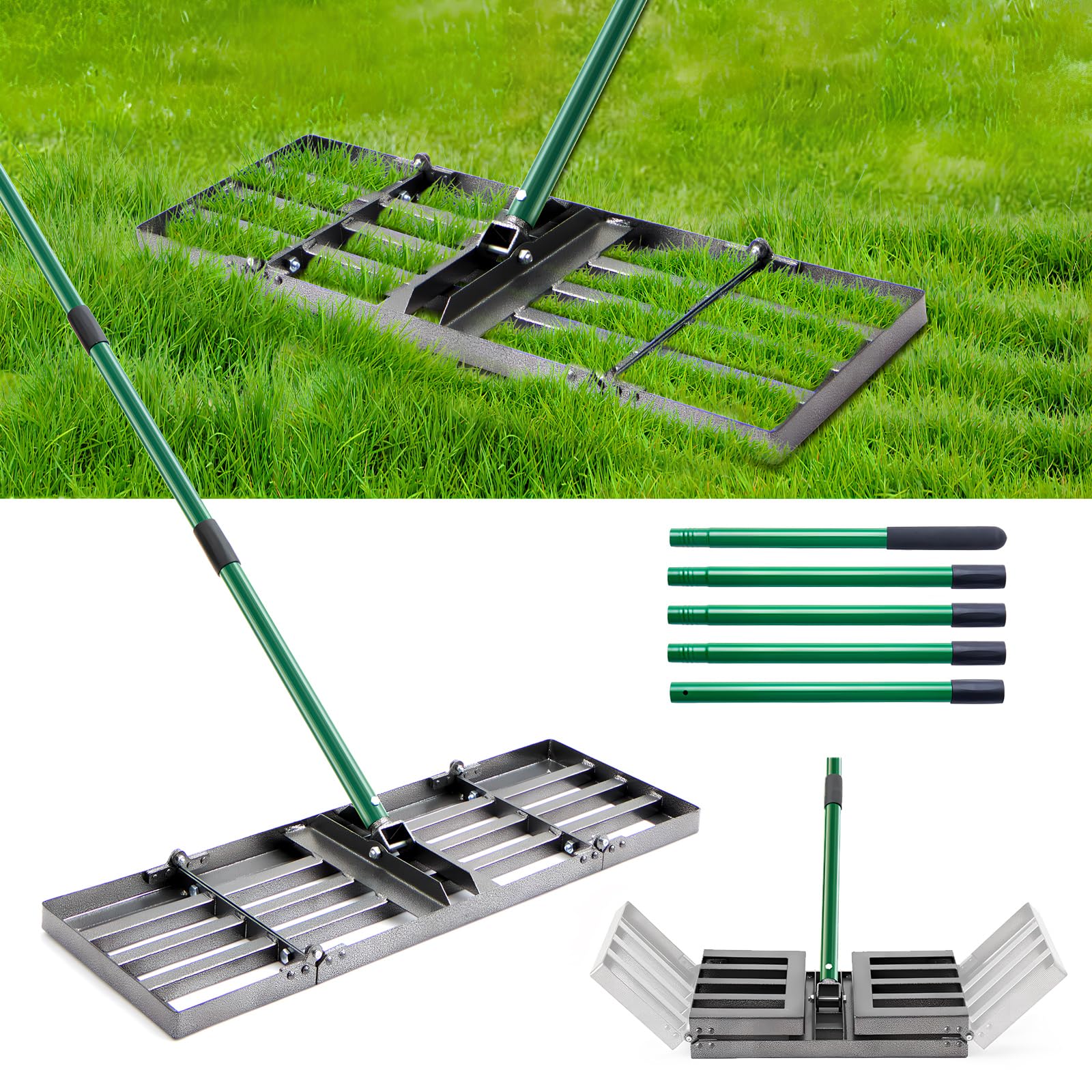 30"x10" Lawn Leveling Rake, Heavy Duty Lawn Leveler with 33"-77" Adjustable Handle, Foldable Ground Leveling Tool for Soil, Sand, Gravel, Ergonomic Design for Lawns, Golf Courses and Backyards