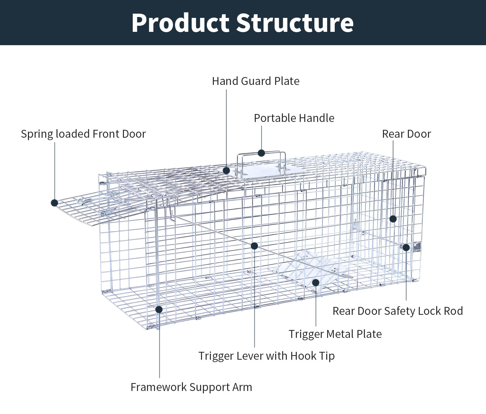 - Professional Trapping Design - Professional design ensures higher catch rates when animals are fully in the animal trap,and the smaller mesh of the trap prevents escape and bait theft