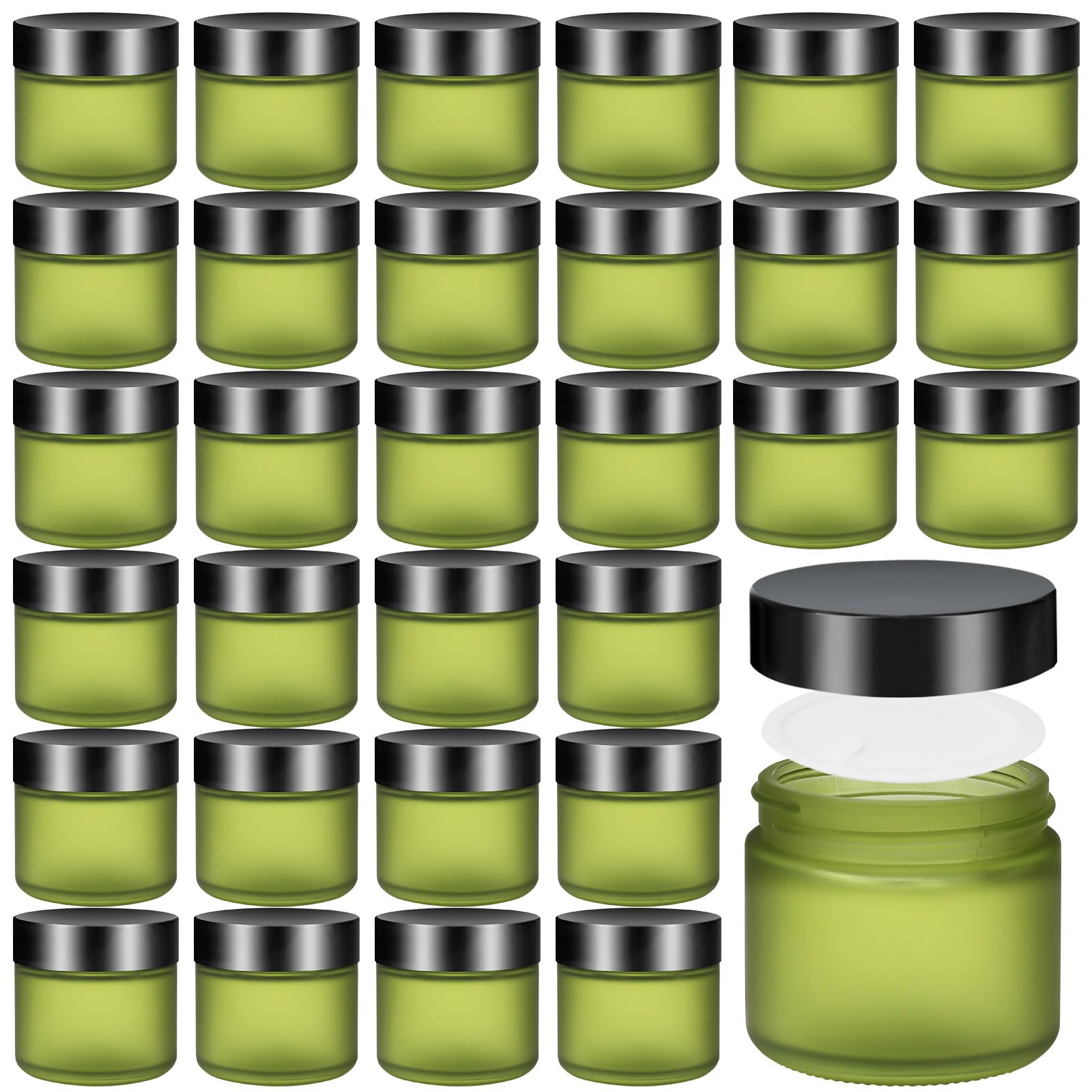 32 Pcs 2 oz Glass Jars with Lids Travel Size Round Leakproof Empty Cosmetic Jars with Inner Liners Lid for Storing Makeup Lotions Face Cream Ointments Candle DIY Making (Bean Green)