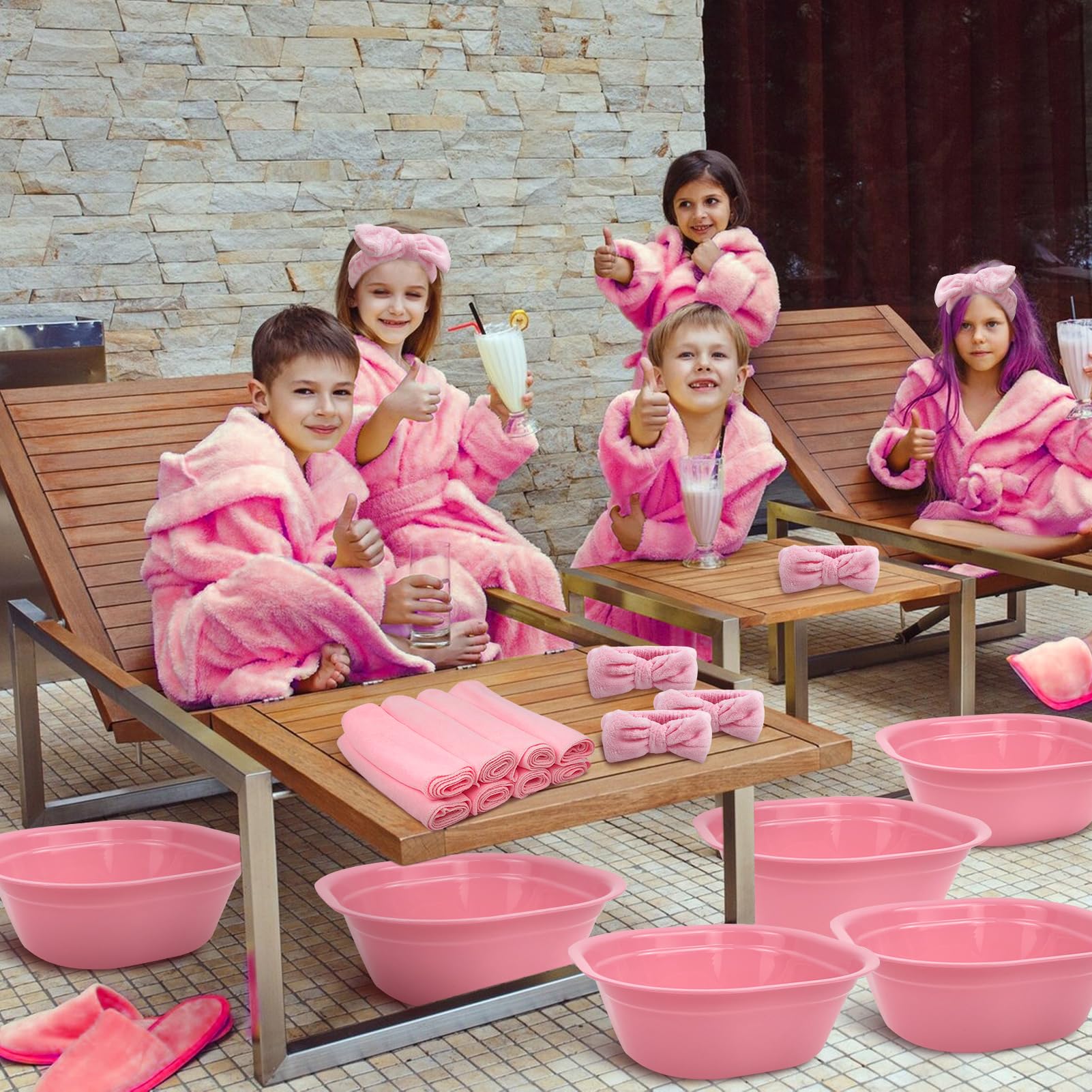 - Complete Spa Experience for Kids: This 32-piece foot spa kit includes 8 pink foot soaking tubs, 8 towels, 8 hairbands, and 8 eye masks, providing everything needed for a fun and relaxing spa party.