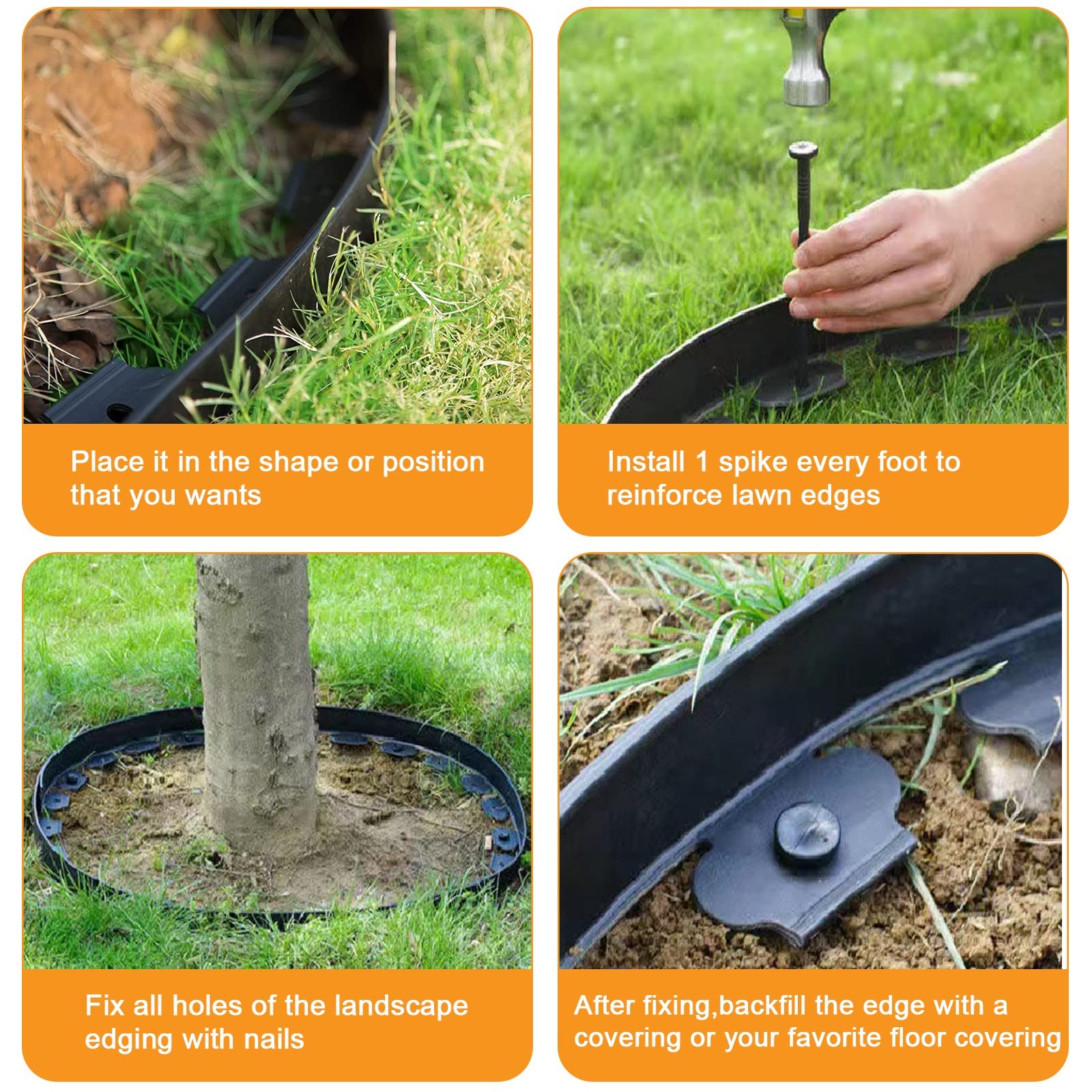 - 【Easy Installation】 You just need to bend it to the shape of the landscape you want, place the edging around the flower beds, trees, and gardens, hammer in spikes is done .With 30 spikes and our landscape edging, everyone can be a garden-design master.