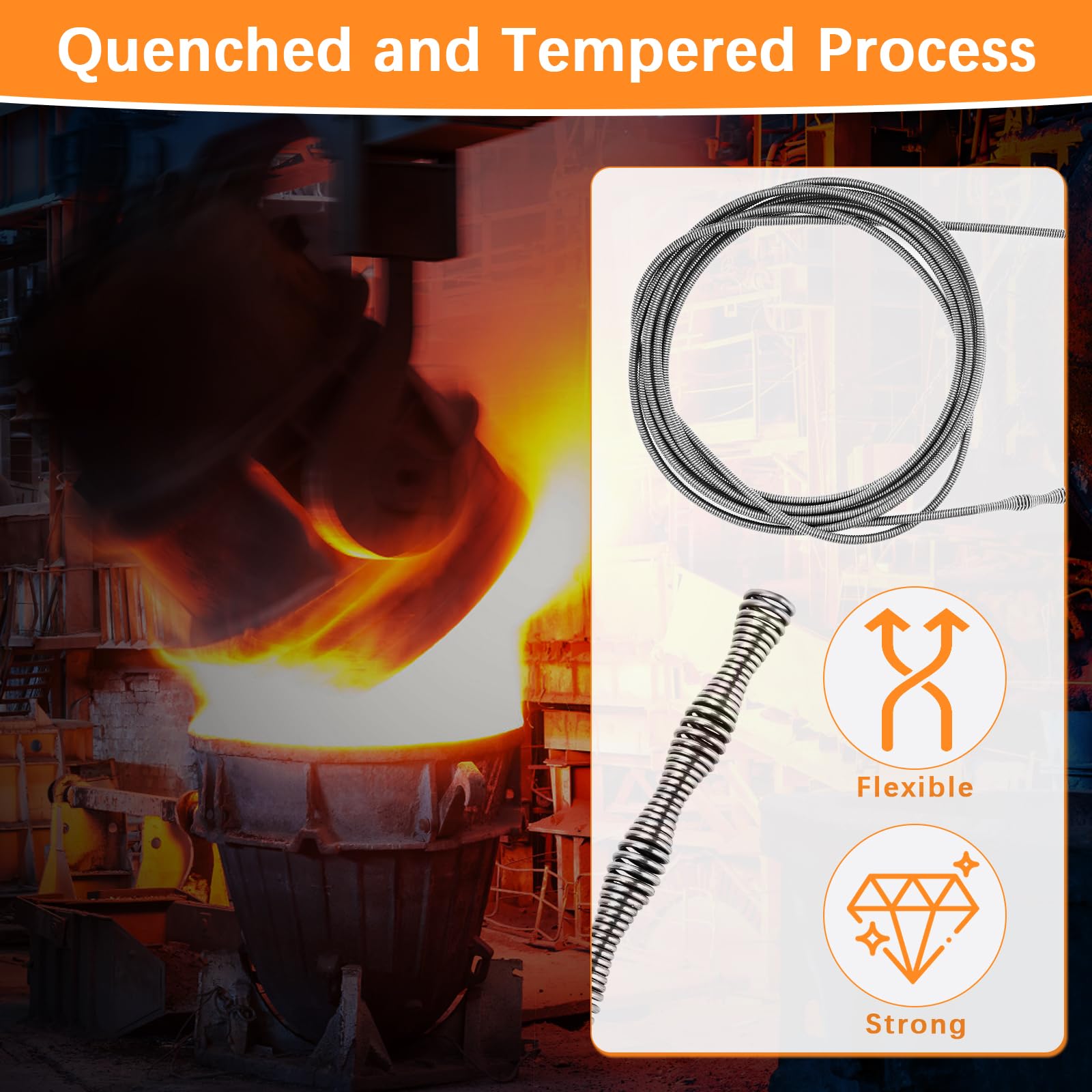 - 【Quenched and Tempered Process】XFIRE-GEAR 35FT Plus Drain snake carbon steel is quenched and tempered, making the rope relatively stiff, yet flexible