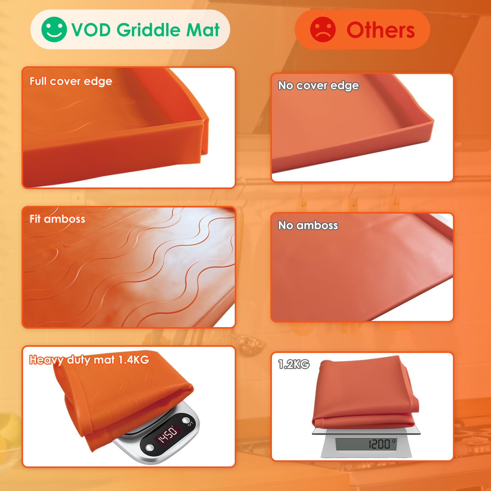 - Food-Grade Confidence: Crafted from 100% food-grade silicone, VOD grill mat prioritizes safety. It's thick, and flexible, ensuring no harmful substances leach into your food. Cook with peace of mind.