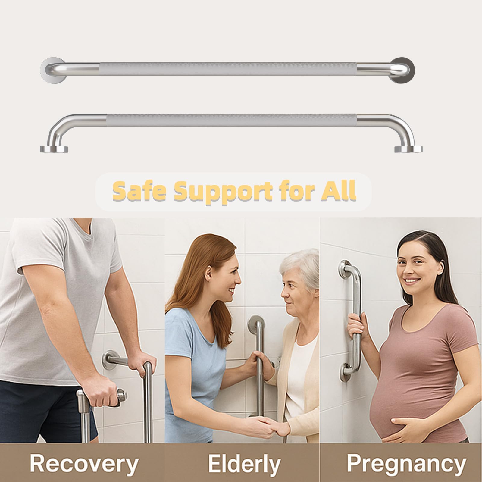 - 【ANTI-SLIP SHOWER SUPPORT BAR】Our shower grab rails features a knurled, non-slip surface for a bath safety bar,even with wet hands. Unlike smooth stainless steel, the brushed nickel grab bar ensures better traction in wet conditions, providing reliable support and enhanced bathroom safety for elderly and disabled users
