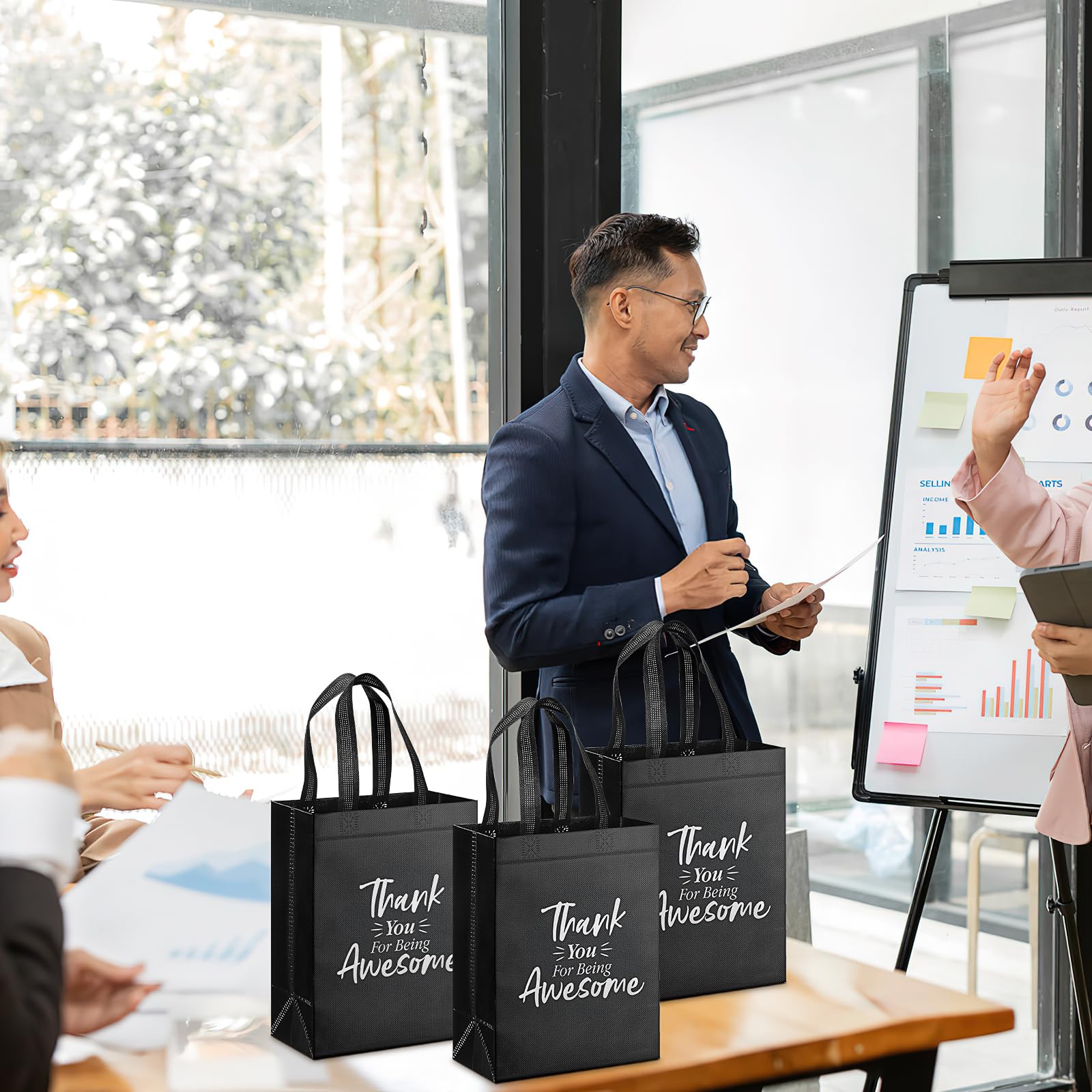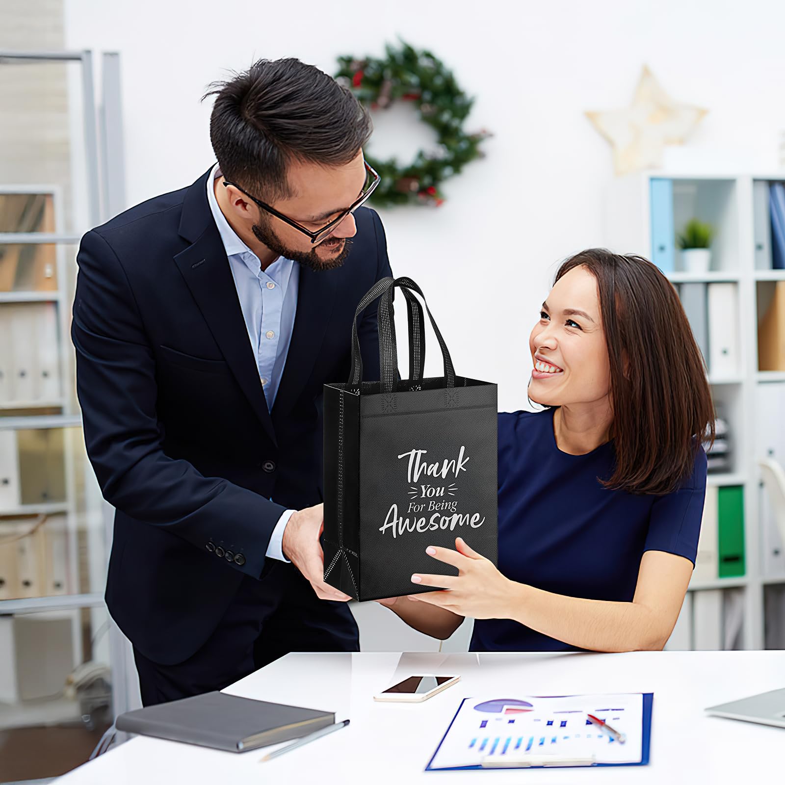 - Elegant Design: These non woven thank you tote bags are designed with glossy surface and are printed with "Thank You For Being Awesome," in bold white text. This thoughtful phrase adds a personal touch to your gift presentation, can show your appreciation to your guests, friends, bridesmaids and classmates, making your recipients feel truly appreciated