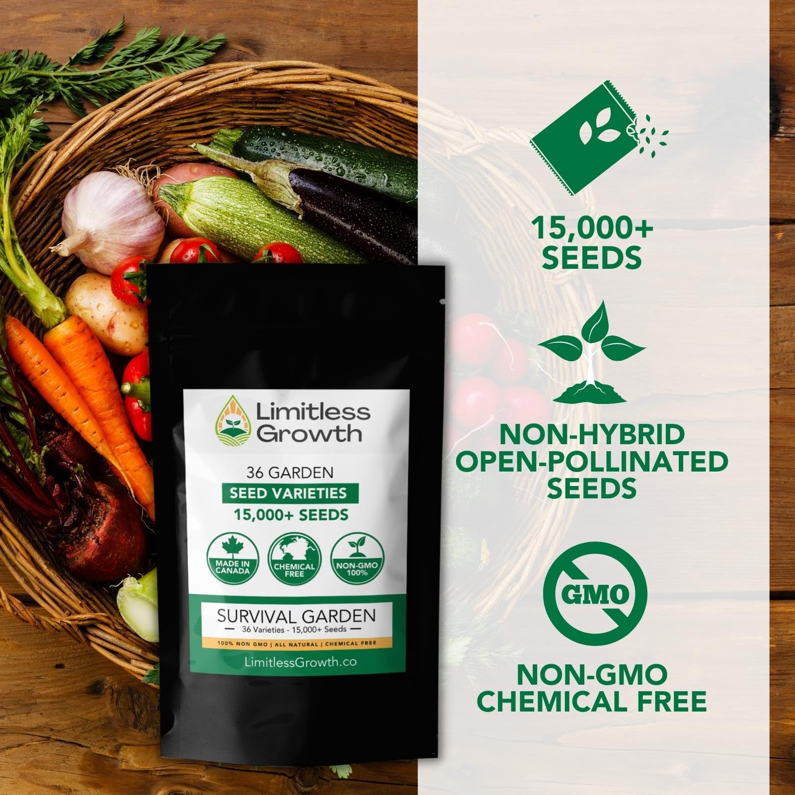36 Survival Garden Seed Vault | 36 Seed Varieties of Herb, Vegetable, & Flower Seeds for a Thriving Canadian Garden | Adaptable for Canadian Growers | Limitless Growth