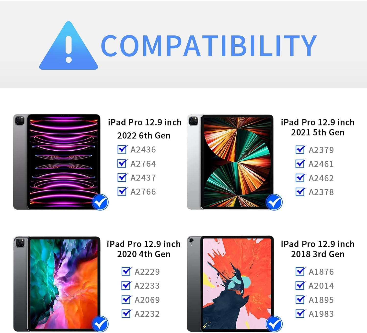- 【Compatible Models】This Rotating Keyboard is for iPad Air 13 inch M3 2025(Model number: A3269/A3271), iPad Air 13-inch M2 2024(A2898/A2899/A2900); for iPad Pro 12.9" 6th Generation 2022 Released (Model number: A2436 A2764 A2437 A2766), for iPad Pro 12.9" 5th Generation 2021 Released (Model number: A2378 A2461 A2379 A2462), for iPad Pro 12.9" 4th Gen 2020 (A2229 A2069 A2232 A2233) and for iPad Pro 12.9” 3rd Gen 2018 (A1876 A2014 A1895 A1988)
