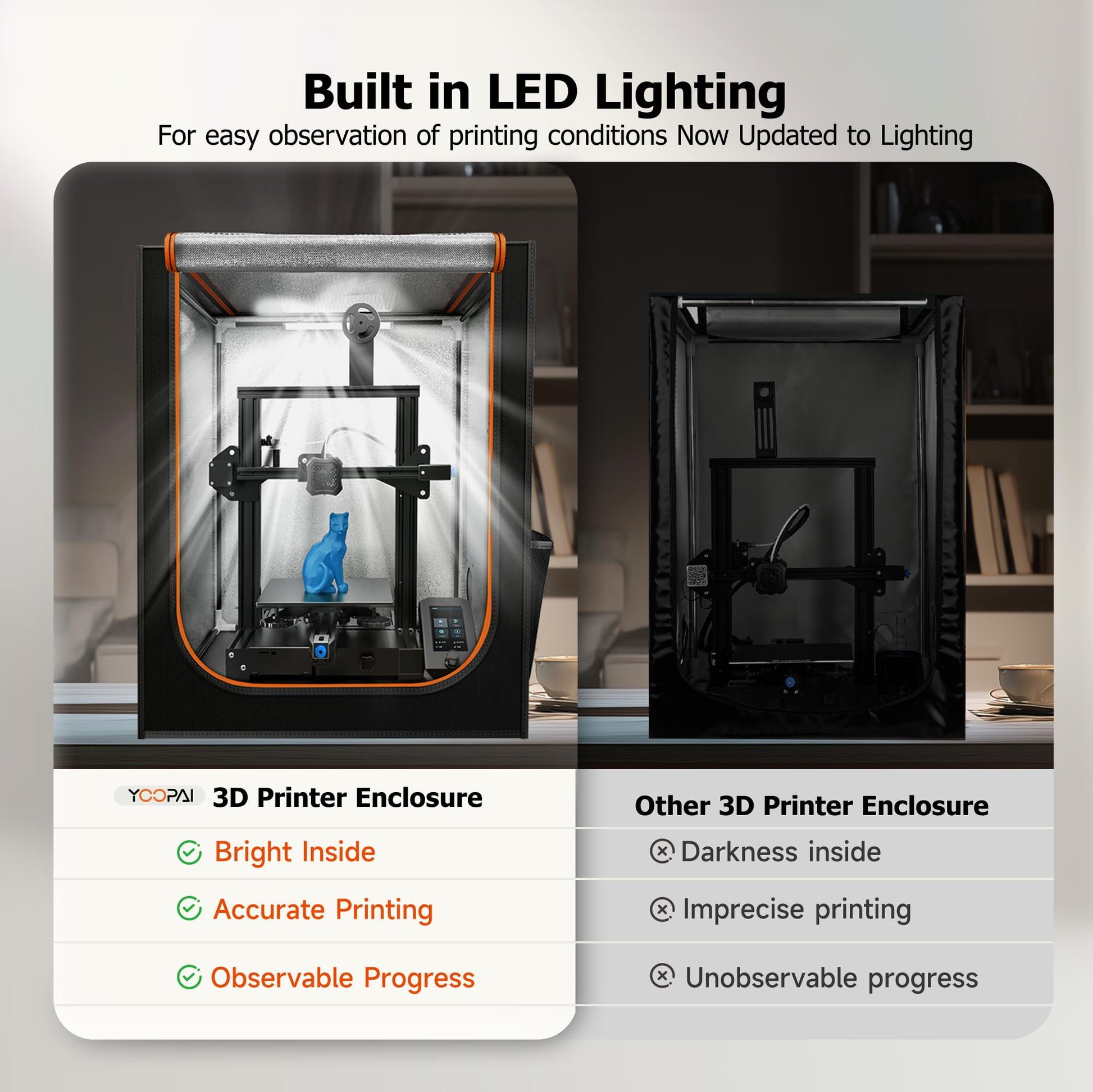 3D Printer Enclosure with LED Lighting, Fireproof Dustproof Tent Constant Temperature Protective Cover for Creality Ender 3 V3 SE/KE/Ender 3/Ender 3 Pro/Ender 3V2/Ender 3S1/Neo/Anycubic Elegoo, Medium
