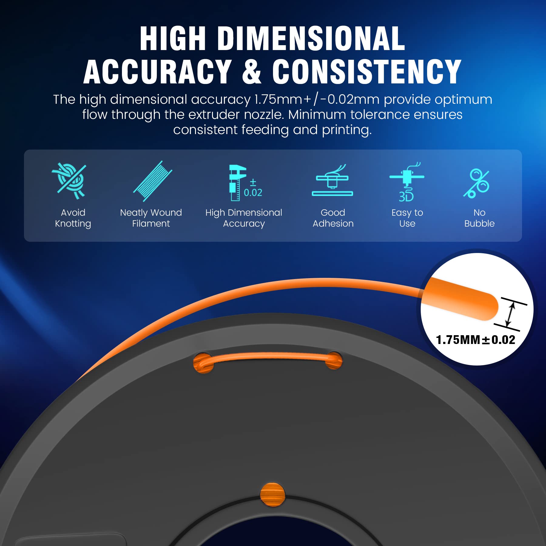 - 【PLA Recommend Settings】We recommend printing the PLA filament at a nozzle temperature of 200-230°C, bed temperature of 50-65°C, printing speed of 50-100mm/s.