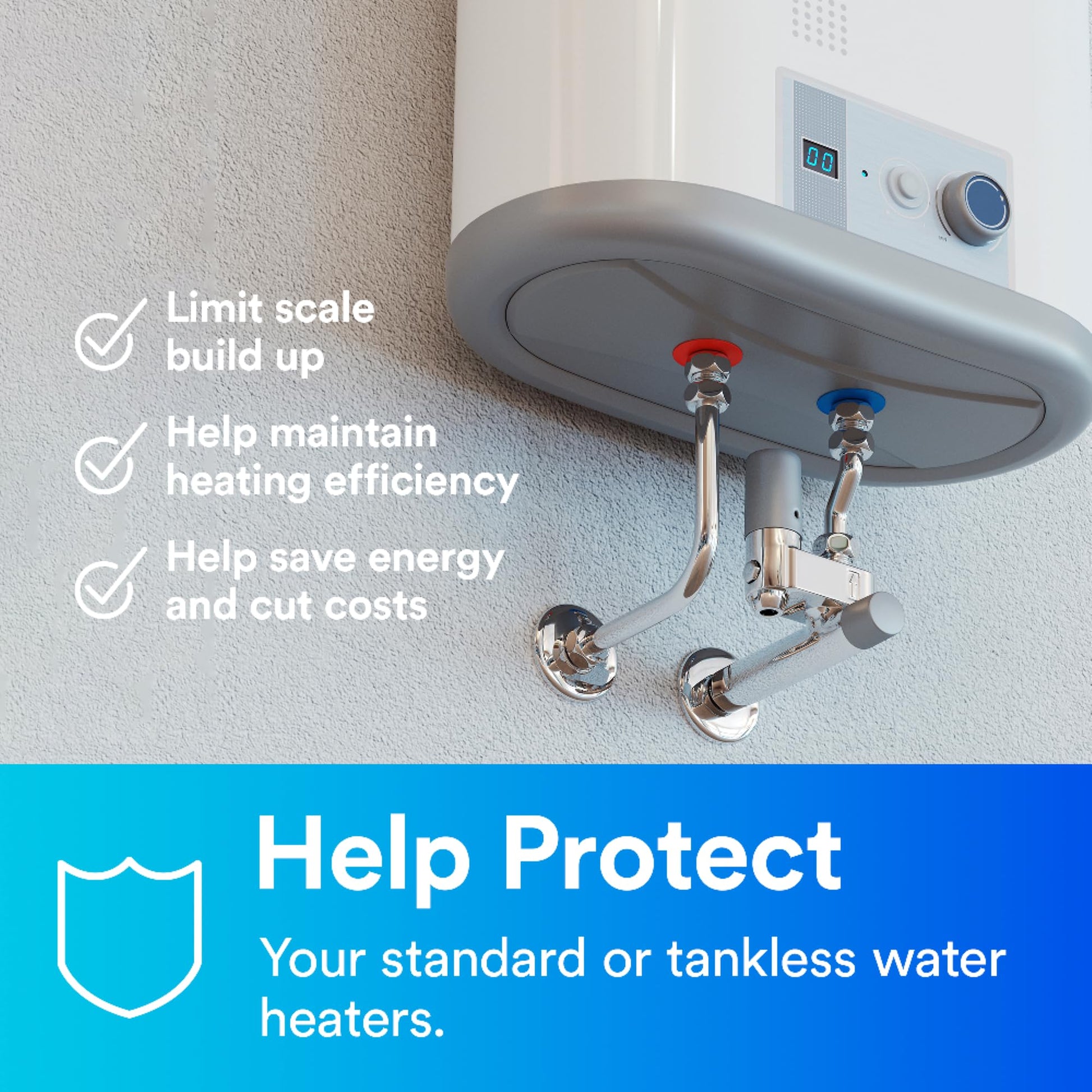 - HELPS PROTECT HOT WATER HEATERS: Polyphosphates, included in this product, help to inhibit scale buildup in hot water heaters (both standard (gas or electric) and tank-less styles) and boilers. Helps extend the life of hot water heaters and hot water using appliances, pipes, and downstream plumbing fixtures such as faucets and shower heads.
