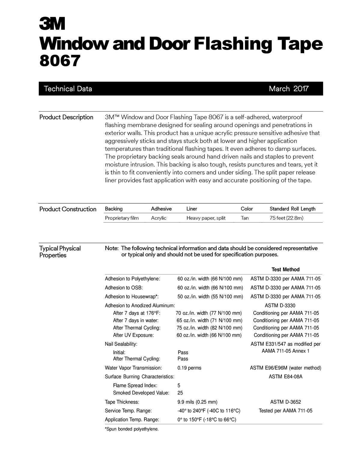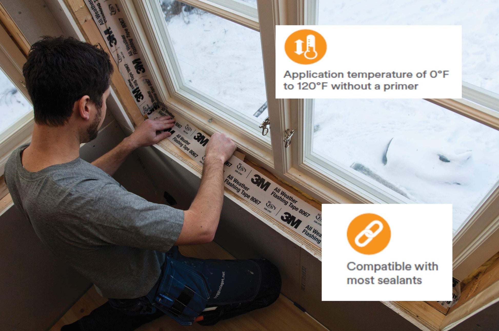 3M Flashing Tape 8067 – 6 in x 75 ft - Waterproof - Adhesive Backed - All Weather - Seal Doors, Windows, Openings in Wood Frame Construction