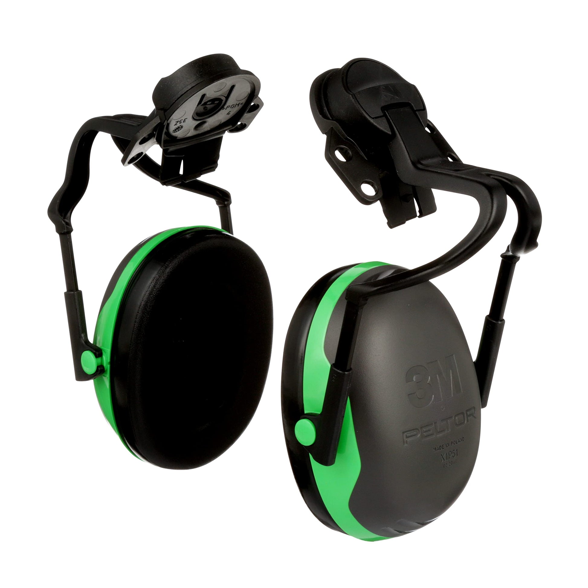 3M PELTOR X Series Earmuff, X1P51E, Full Brim Hard hat Attached electrically Insulated Green