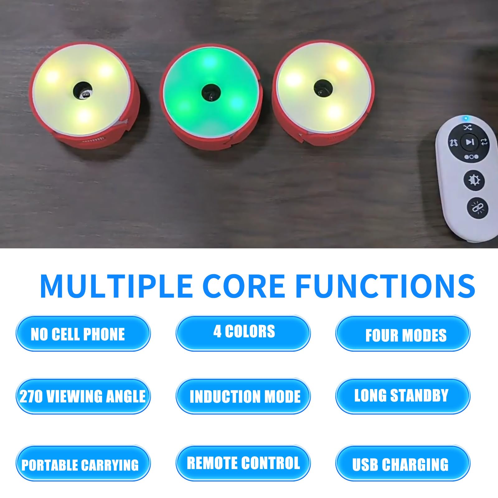 Package includes: 3*Agile Reaction Training Lamp, 1*remote control, 1*instruction manual, 1*USB charging data cable, 1*magnetic iron sheet with adhesive backing