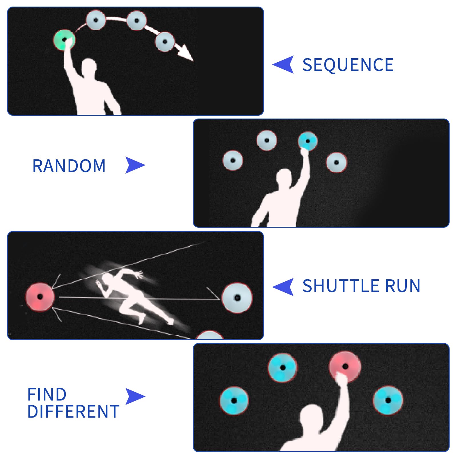 - Intelligent sensing function: including four modes: random mode, run back mode, find the difference mode and sequence mode. Its sensing distance is up to 10cm, with sensitive sensing ability, and can be trained at any angle and position. These different training modes can help trainers to conduct reaction training in different situations and improve their reaction speed, attention and coordination ability