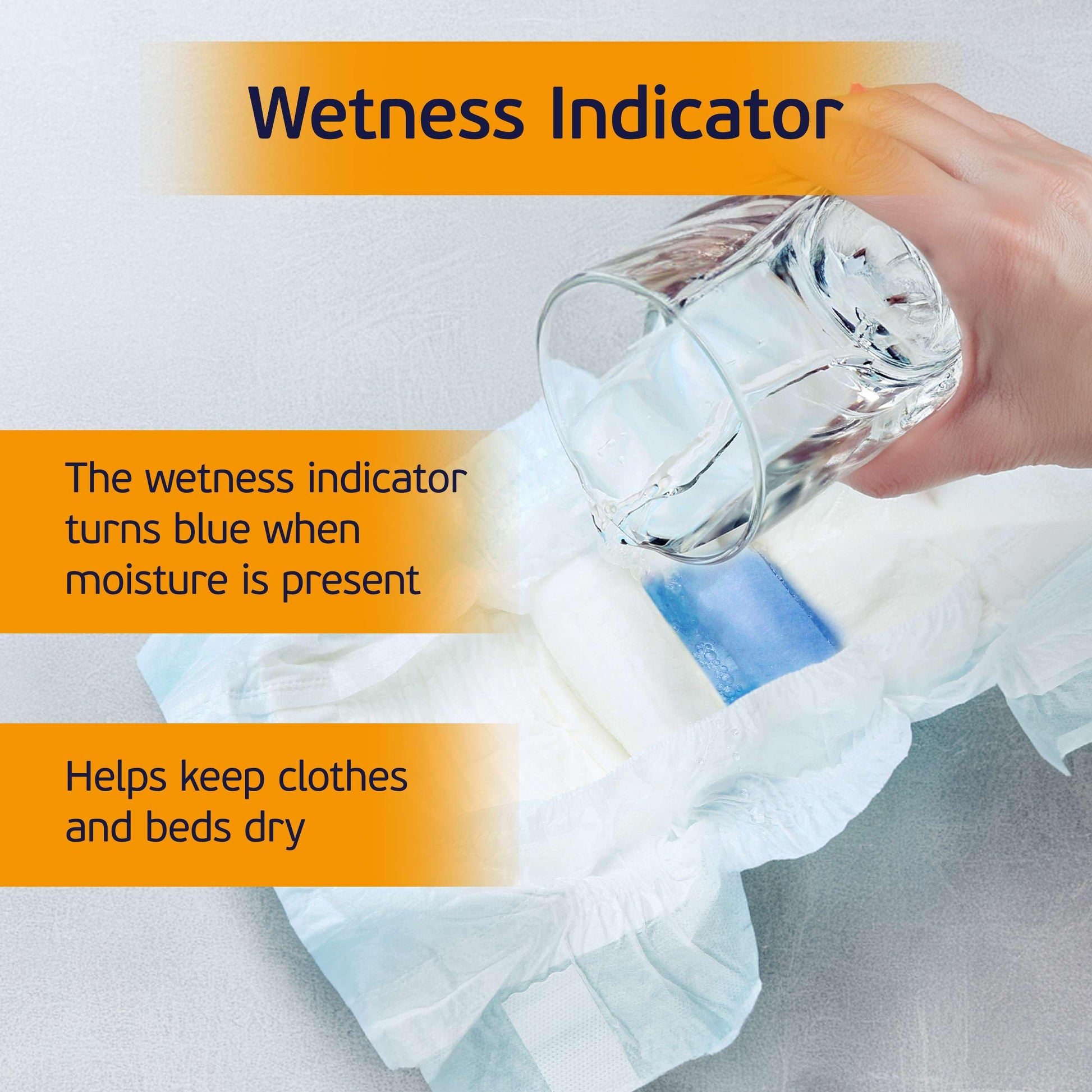 - These adult diapers for women and men overnight help keep the bed and clothes dry if there is a bladder leak. When moisture is present, the wetness indicator will turn blue to help caregivers know when a change is needed.