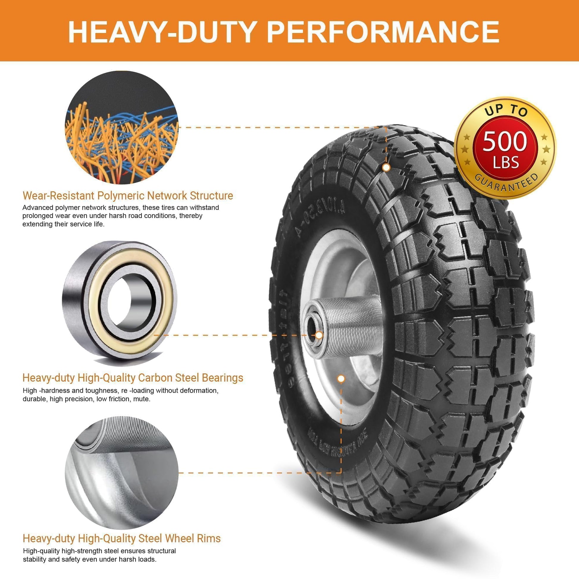 4.10/3.50-4 Tire and Dolly Wheel Flat Free - Solid Rubber Hand Truck Wheels 5/8" Axle - Gorilla Cart Tires Replacement for Garden, Wagon, Yard and Wheelbarrow (10 Inch 2 Pack)