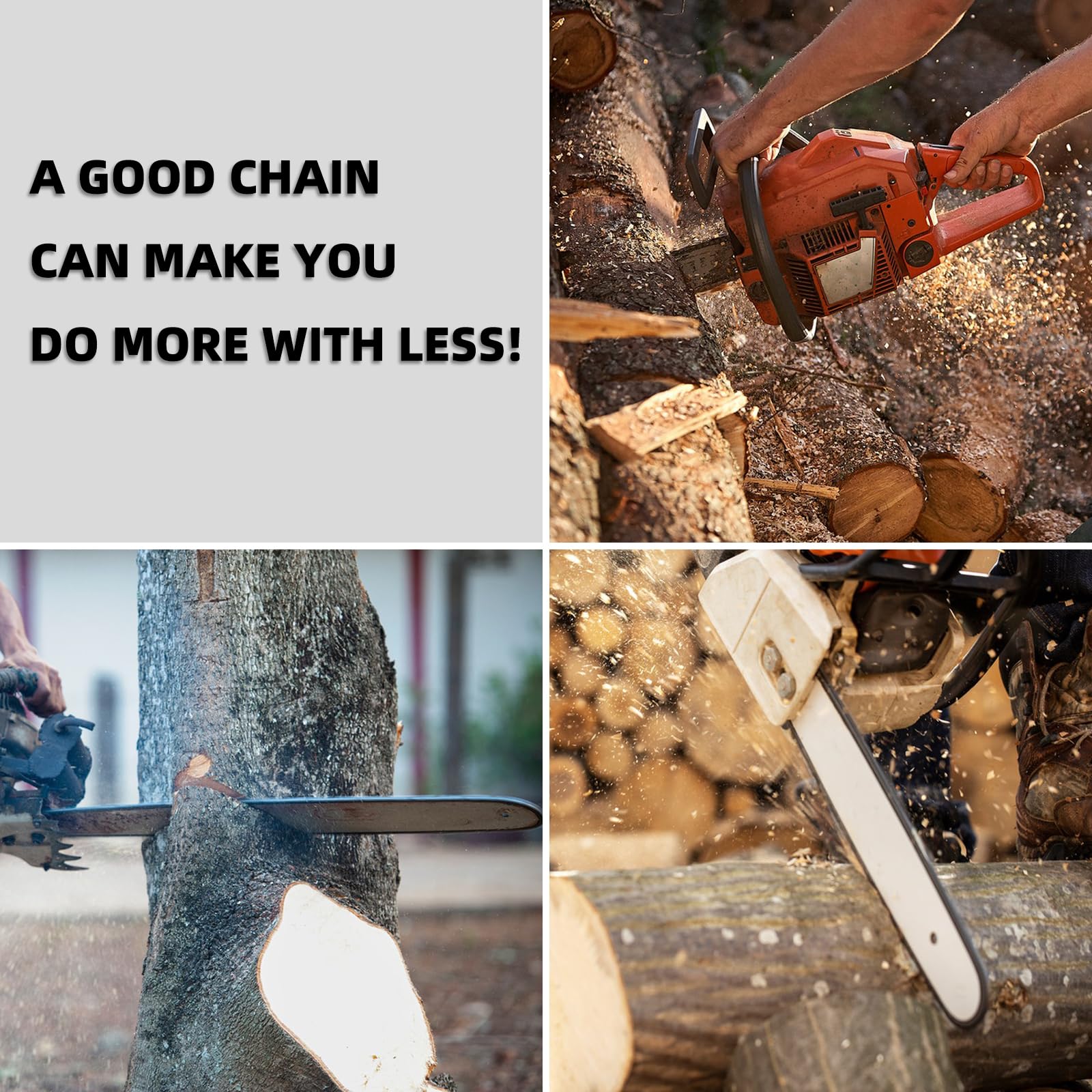 - CHAIN FEATURES: Premium German steel, Durable And Safety Design, Precision, Heat-Treated, Cuts Smoothly, Hardened Rivets, Japanese Chrome-Plated Technology, Sharp Cutters, with Oil Storage Grooves Resists Corrosion.