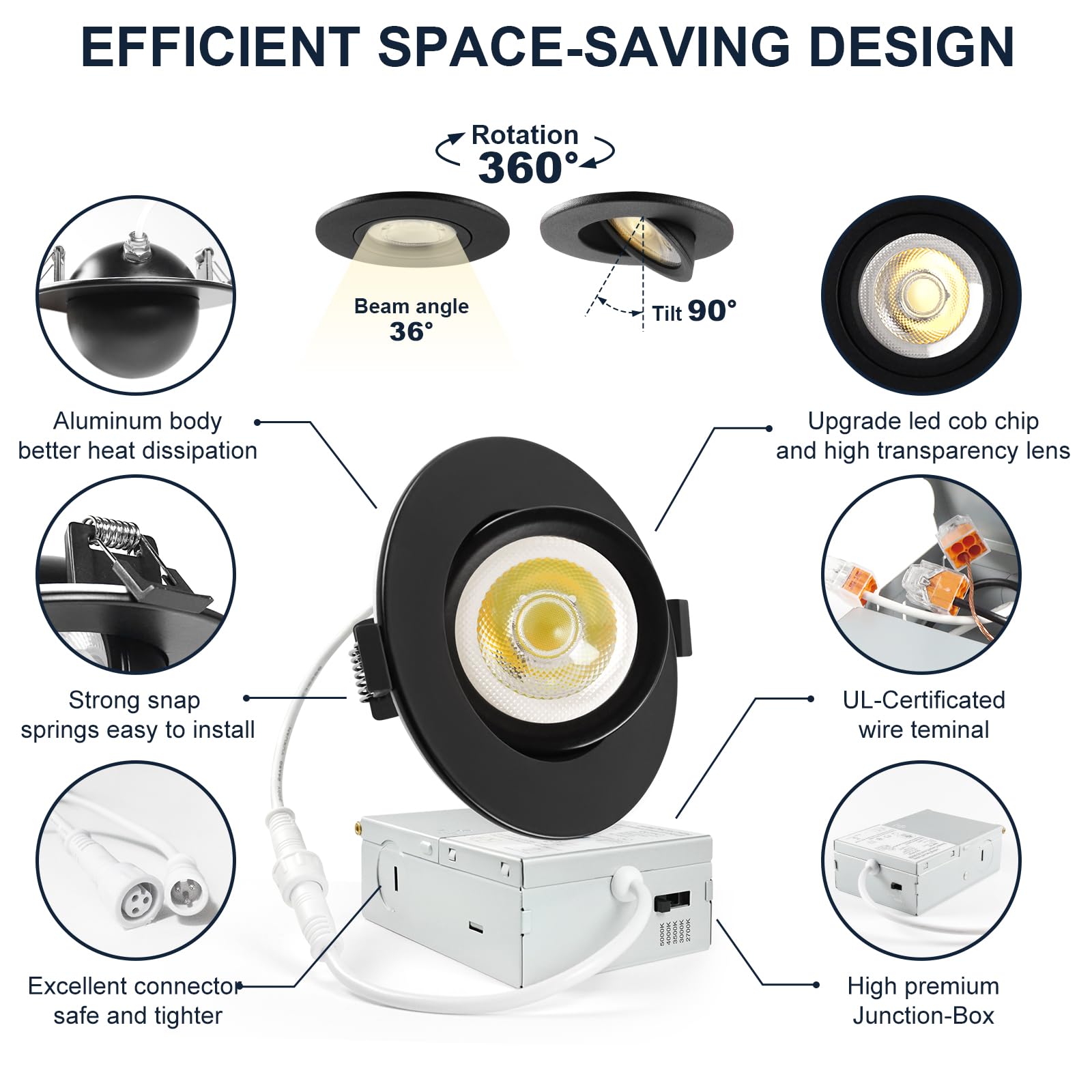 - [Quality] Introducing the LULIT 4-inch LED slim gimbal recessed light - the perfect lighting solution for your home or office. Our product is designed with the latest technology, featuring a new chip and a sleek new design, ensuring high quality and longevity with an impressive lifespan of over 50,000 hours.