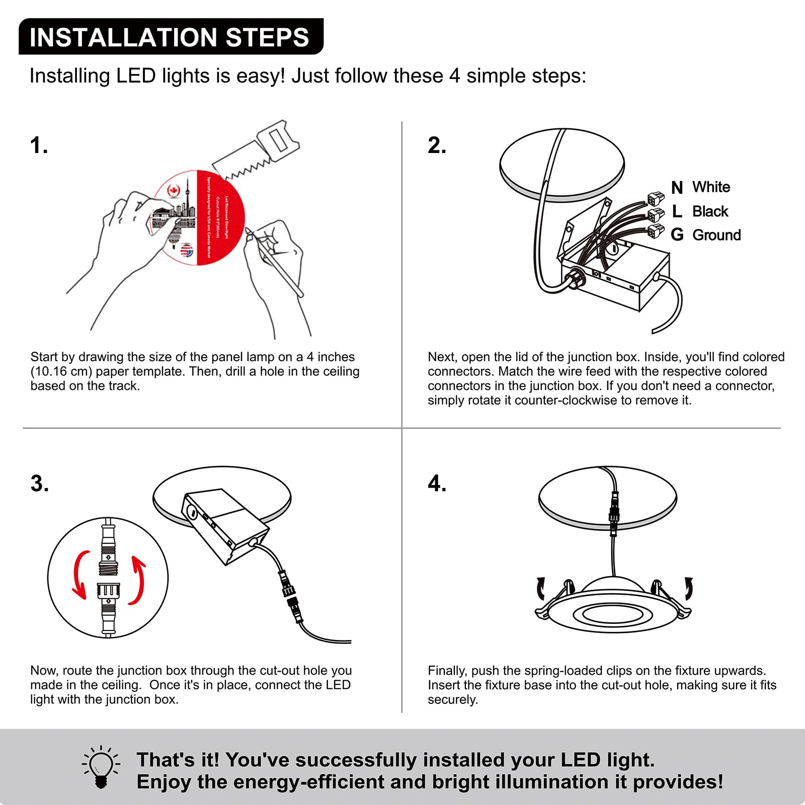 - [Quick and safe installation] With our beginner-friendly installation process, you can easily install LULIT in just minutes. Simply cut a hole in the ceiling with our 1:1 hole template, connect the box to the cable, and use a spring clip to fix it on the ceiling.
