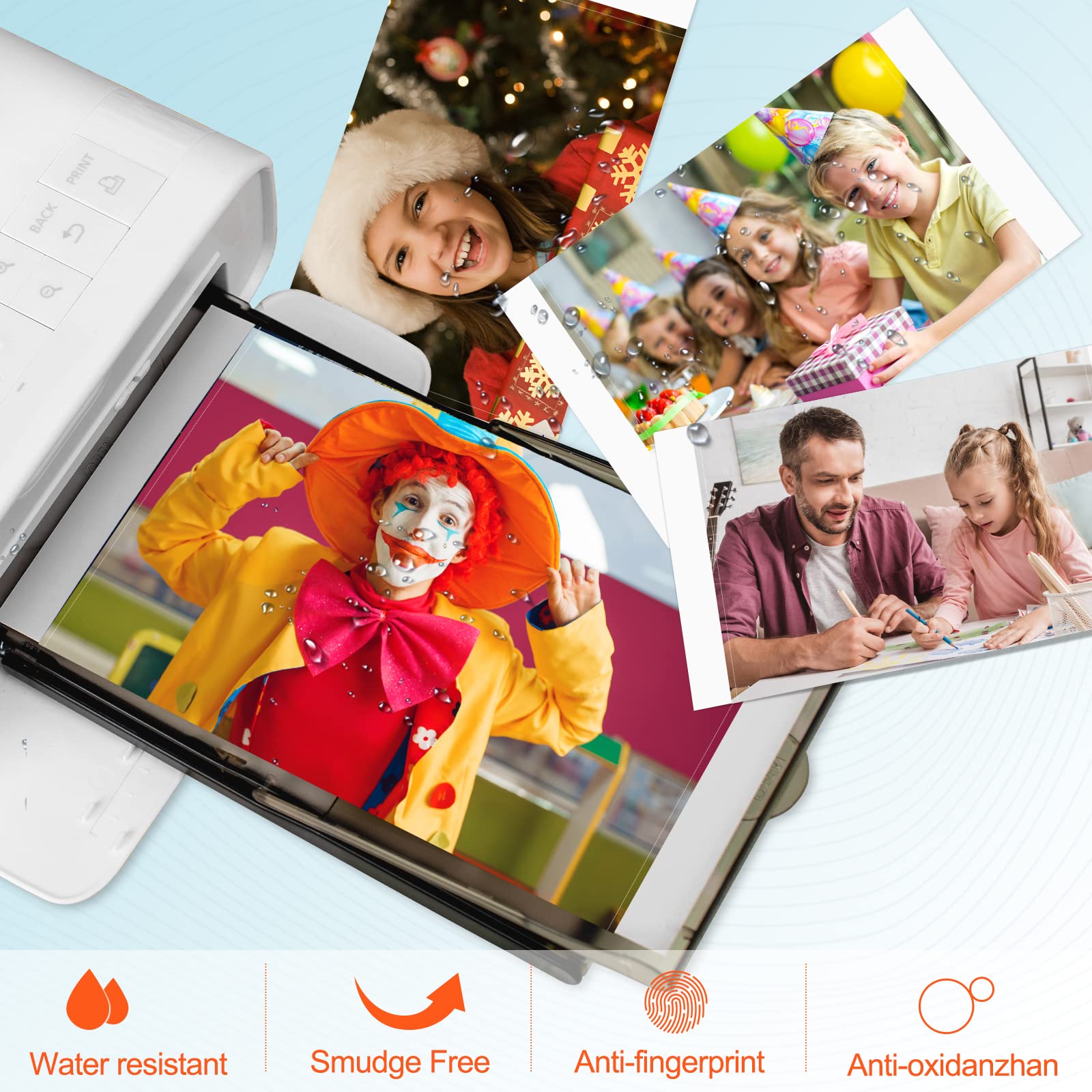 - Dye sublimation technology for exceptional colorful results: The first three prints fully restored the photo color, and the fourth time added a protective film to the photo paper. withstandOxidation, withstand water, withstand fingerprint, withstand fading. Keep good memories for long time.