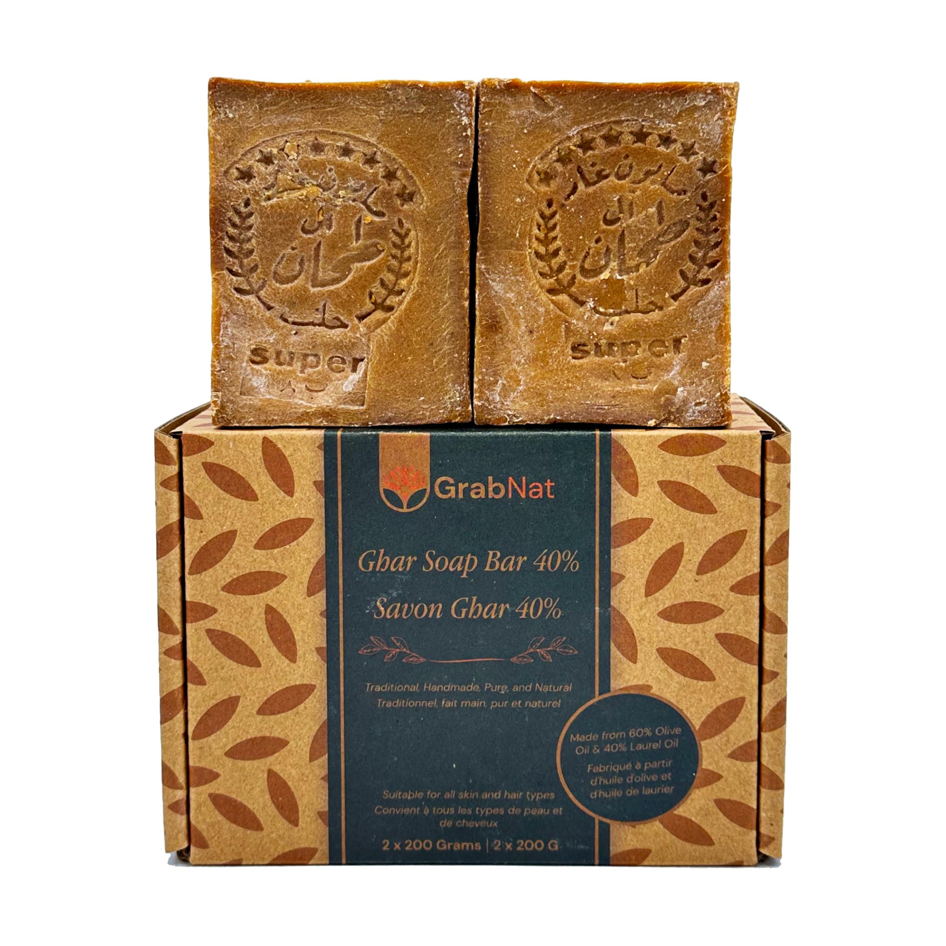 4-Pack Ghar Soap | Handmade, All-Natural, Traditional | Pure Olive Oil & Laurel Oil Soap | Savon Alep | Suitable for Face, Body | Long-Lasting & Gentle Cleanser (4 x 160g) (Laurel 40%)