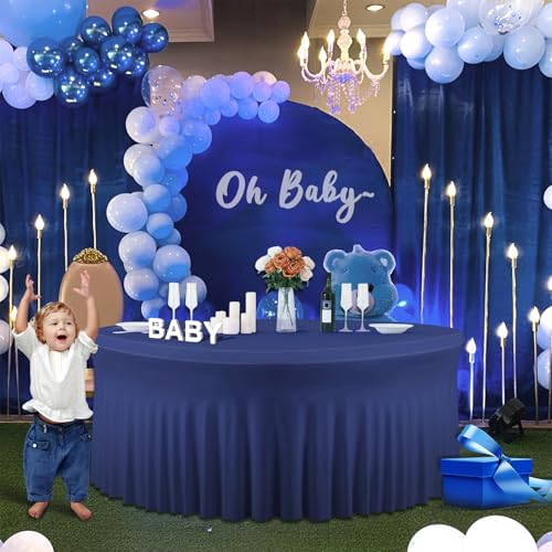 - 【Stylish & Durable Round Navy Blue Table Cover】: This round navy blue tablecloth 72 inch is crafted from high-quality spandex, ensuring long-lasting use while resisting wrinkles. The flowing skirt design elevates any setting, making it ideal for both casual and formal occasions. Use these round navy blue cloth tablecloths to create a chic, cohesive look when paired with candles, centerpieces, and string lights.